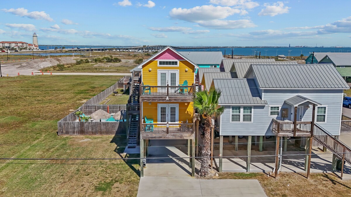 This is a beach front property on North Beach. Sunrise views. We are the only beach house on the beach. This is close proximity (5 min drive) to the Texas State Aquarium & Lexington Museum or use the beach walk from outside the home all the way down as well. Fishing area & play area is walking distance. Great place to enjoy the sun and the beach ! This house is clean and ready to enjoy your vacation. We have another house across the street to accommodate more guests up to 8 more, message me.
