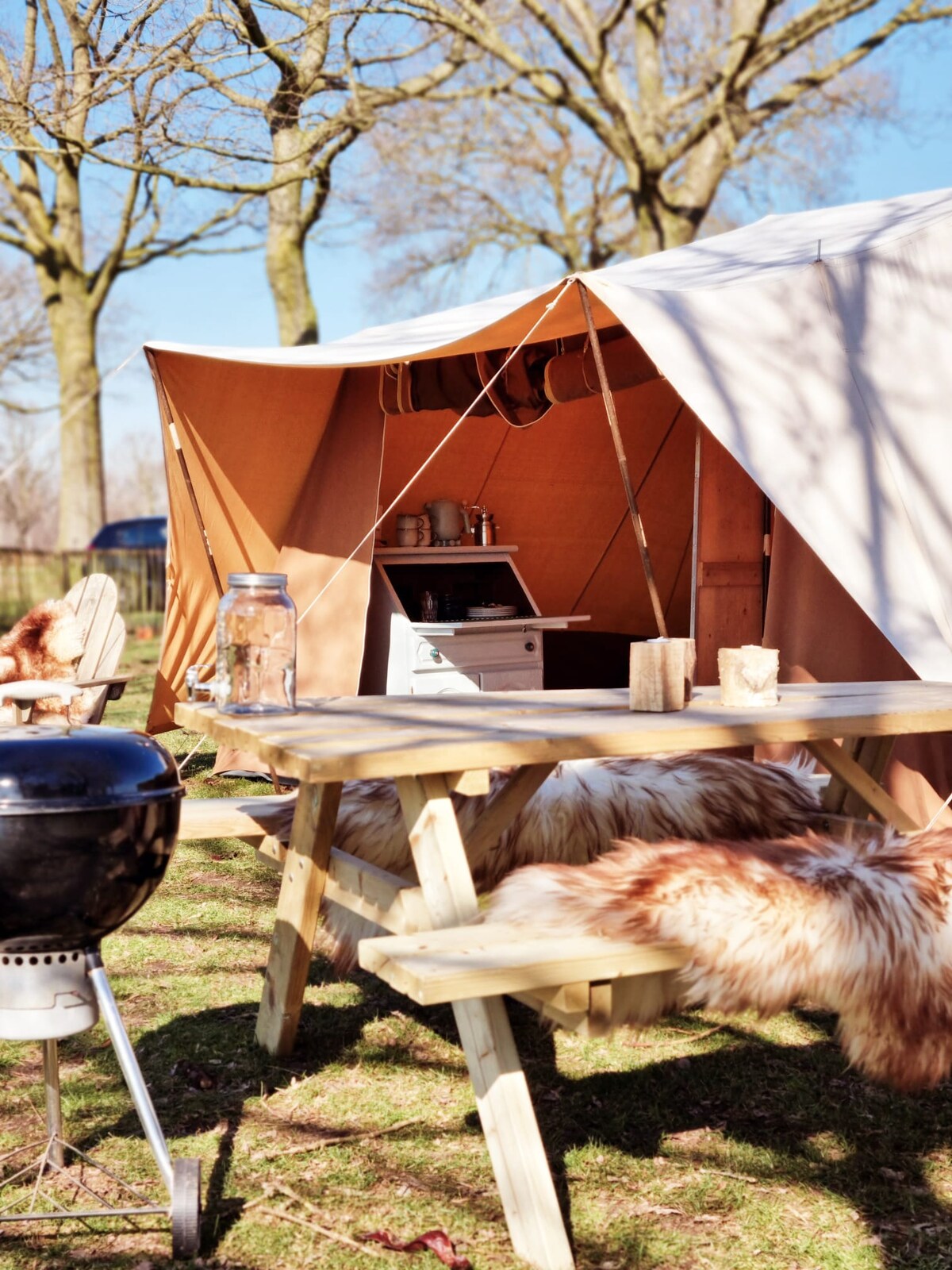 Glamping with sauna in our backyard