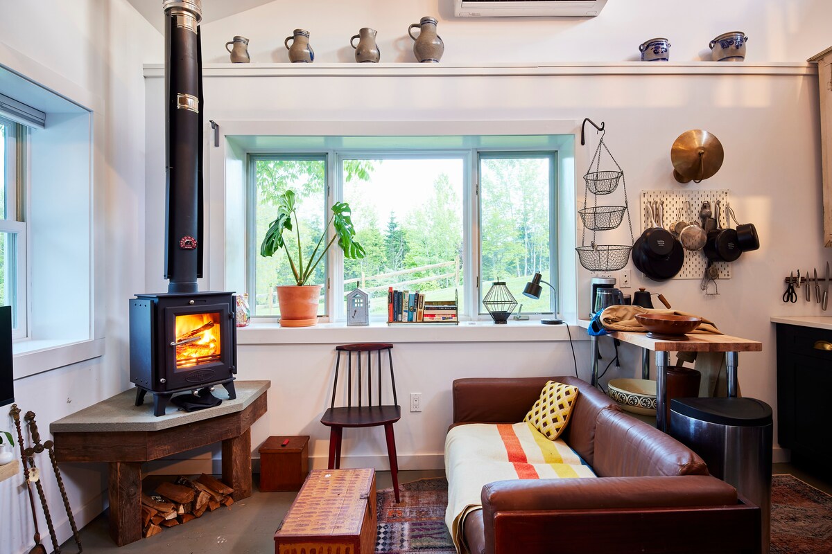 Tangkilikin ang kalikasan sa estilo sa kuwentong ito sa kagubatan. Pinagsasama ng payapang pagtakas na ito ang mga kakaibang istruktura, mga piniling espasyo ng pagtitipon at pribadong makahoy na burol na napapalibutan ng mga hiking trail at kakaibang bayan. Disclaimer: Ito ay isang rustic cabin. Ang pag - init ay mula sa isang wood - burning stove, walang AC. Ang bath house ay isang hiwalay na istraktura mula sa cabin, sa gilid ng burol na may mga baitang na bato. Ang pagluluto ay sa pamamagitan ng mga ihawan ng uling, maliit na panlabas na maliit na kusina o apoy.