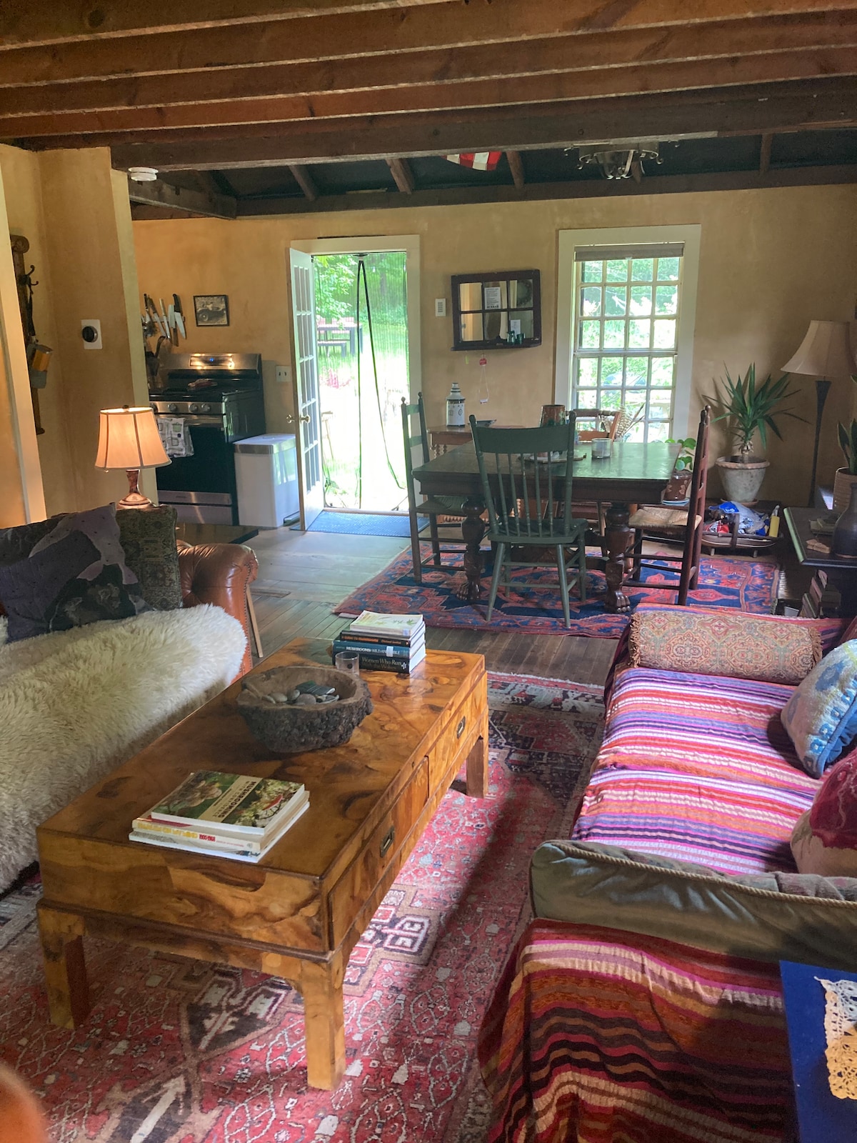 Kamangha - manghang artisan na dinisenyo cottage sa mga pampang ng magandang Housatonic river. Matatagpuan sa isang tahimik na residensyal na cul de sac , walang dumadaan na trapiko. Nagtatampok ang interior ng plaster sa kabuuan, stone veneer at mosaic flooring at orihinal na likhang sining. Kusinang kumpleto sa kagamitan, eleganteng silid - kainan. Napakalaki ng soaking tub sa master bath. 2 silid - tulugan, natutulog 4. Mga kamangha - manghang tanawin ng tubig at bundok. Malaking outdoor deck kung saan matatanaw ang tubig, pangalawang maliit na stone dining deck. kahanga - hangang mga hardin.