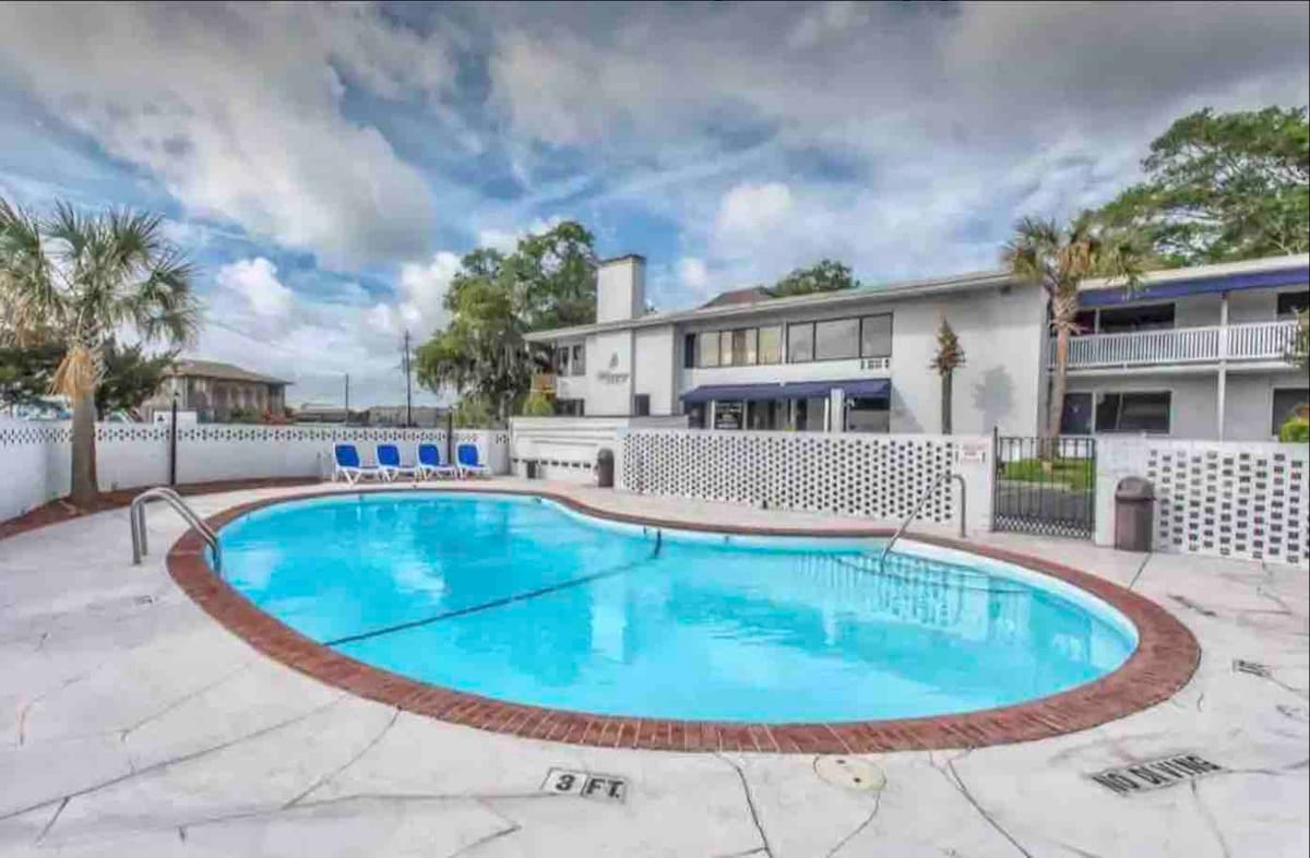 Tangkilikin ang lahat ng inaalok ng Wilmington mula sa mga award - winning na restaurant nito hanggang sa top - notch nightlife nito. Matatagpuan ang lahat sa loob ng isang bloke ng maigsing distansya. Magre - relax ka sa isang one - bedroom apartment na may mga kumpletong amenidad na may kasamang wireless Internet, lahat ng linen, kumpletong kusina, at nakahiwalay na sala. Tangkilikin ang mga nakamamanghang tanawin mula sa iyong balkonahe na tinatanaw ang Cape Fear River. ~ NAG - AALOK DIN KAMI NG AIRPORT P/U AT DROP OFF PARA SA $ 40.00 ROUNDTRIP. PAHINGI LANG PO NGDETAILS~