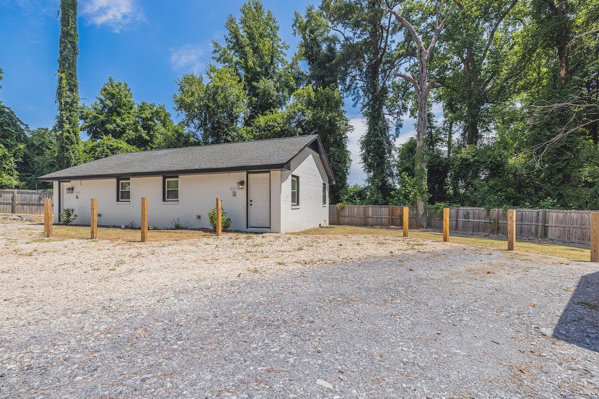 Pinapatakbo ng Pineland Express ang magandang 12 yunit na ito sa Fayetteville. Ang lahat ng mga suite ay may kumpletong mga pag - aayos, na may mga natatanging luxury touch tulad ng pasadyang tile work, granite counter, rainfall shower head, LVP flooring, soft close drawer, atbp. Ipinagmamalaki rin ng property ang gated entrance at mga outdoor security camera. Ang bawat suite ay may digital na sistema ng pasukan, smart technology thermostat, dedikadong fiber internet, double soundproofing, pre - paid streaming service, kumpletong kusina, at higit pa!