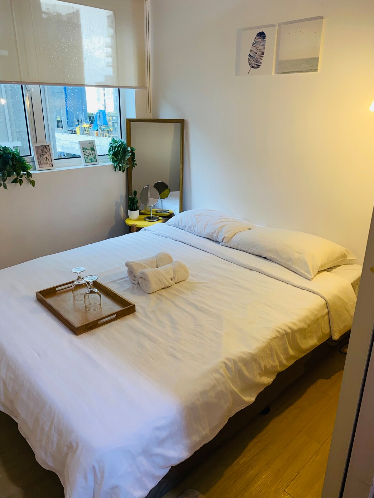 Mamahinga sa isang beach vibe, tahimik na studio unit na perpekto para sa isang mabilis na pagtakas mula sa buzz ng lungsod. Ang mapayapang staycation na ito ay madiskarteng matatagpuan sa isa sa mga pangunahing lugar ng Quezon City. Kinakailangan namin ang mga wastong ID ng LAHAT ng bisitang may legal na edad na namamalagi sa yunit para sa sulat ng pahintulot. Mayroon kaming mahigpit na alituntunin sa tuluyan para mapanatili ang aming yunit at gawin itong nakakarelaks na lugar para sa iyo at sa mga susunod na bisita. Sinisikap naming gawing napaka - abot - kayang presyo ang iyong pamamalagi. Magbigay ng makatuwirang review.
