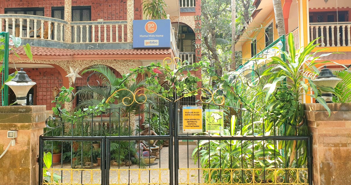Ang malinis na "% {bold Mids Home" na nasa loob ng Palm grove ay matatagpuan 1 km lamang mula sa maaliwalas na Morjim Beach. Ang pinaka - hinahangad na destinasyon ng turista sa hilaga ng Goa, ang lugar na nais mong bisitahin at ang lugar na nais mong hindi ka umalis. Ang "% {bold Mids Home" na may 8 ACstart} Double Rooms na may mga washroom na nagtataglay ng lahat ng ginhawa at modernong pasilidad ay nasa par sa anumang naka - star na hotel. Isang perpektong lugar para magrelaks kung saan masisilayan mo ang katahimikan ng buhay sa kanayunan sa gitna ng mga naglalagablab na grove.