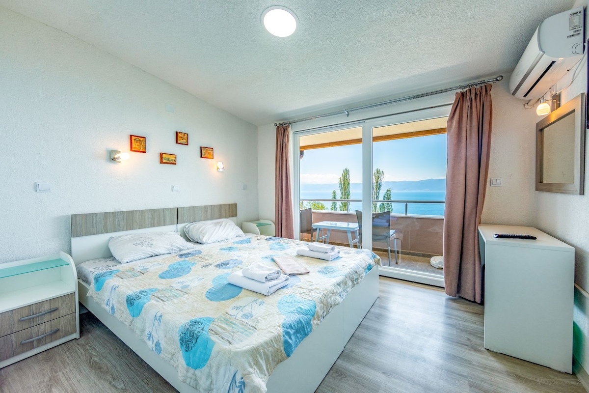 Orhidea House sa unang linya, sa tabi ng lawa, sa simula pa lang ng lumang bayan. Napapalibutan ng maraming makasaysayang monumento pati na rin ang mga natural na kagandahan, nag - aalok kami ng nakamamanghang tanawin at isang pagkakataon na maging sa sentro kung ang bawat nangyayari. Ang plaza ng lungsod ay mas mababa sa 2 minuto sa pamamagitan ng paglalakad, habang sa maraming mga beach ay maaaring maabot sa mas mababa sa 1 minuto. Nasa paligid namin ang lahat ng makasaysayang lugar, kaya hindi na kailangang gamitin ng mga bisita ang kanilang sasakyan para makita ang lungsod. Binubuo ang double room ng double bed(o dalawang single bed), kumpletong banyo, mini - bar, cable TV, at walang tanawin ng lawa. Sa sahig ay may kusinang kumpleto sa kagamitan na pinaghahatian ng 4 na kuwarto. May libreng kape at tsaa mula sa amin ang mga bisita. Sa tag - araw maaari itong maging maingay sa gabi dahil sa mga bar at restaurant na nasa aming nakapalibot.