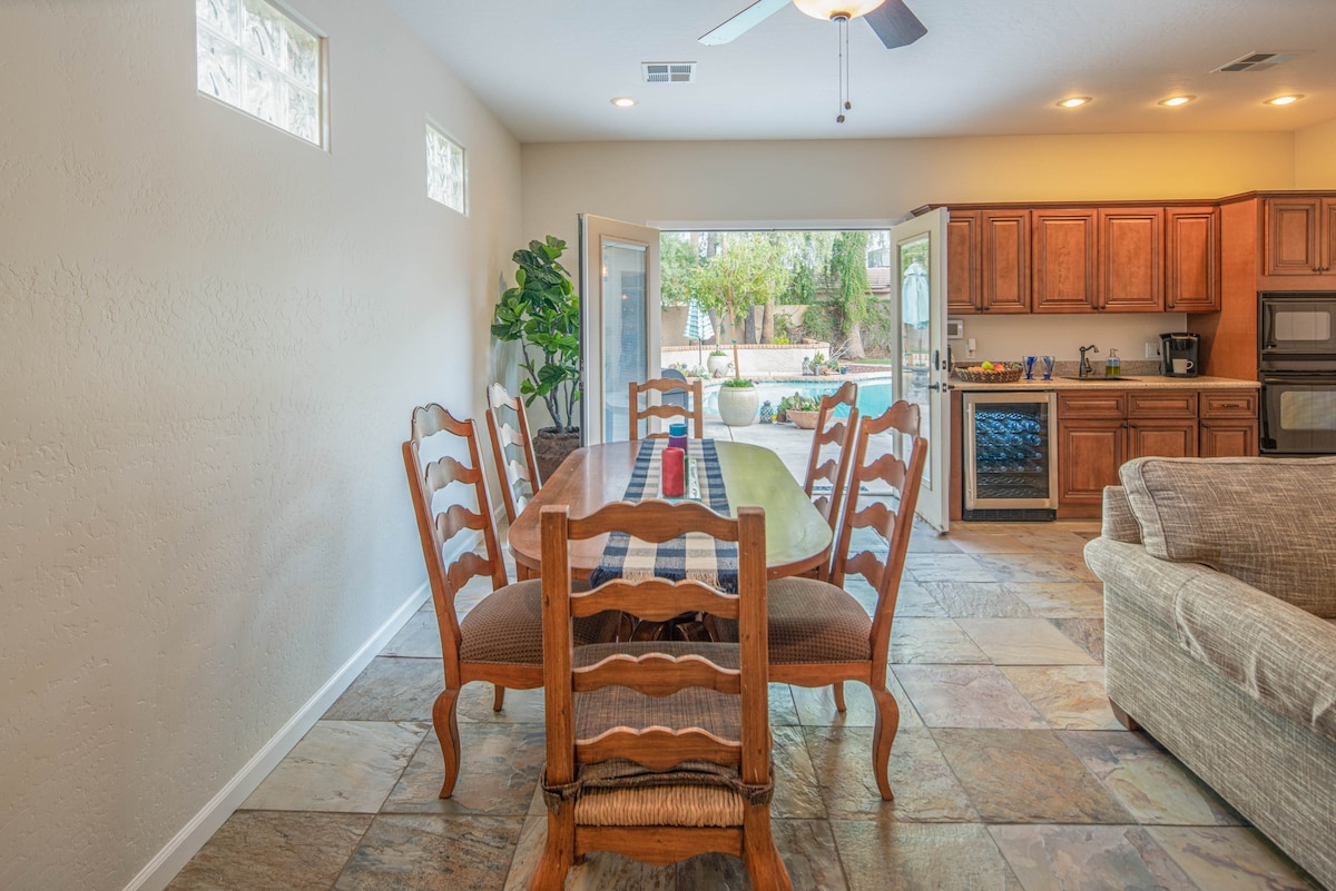 Malapit sa lahat ng inaalok ng Scottsdale ang two - bedroom, one - bath suite na ito na may pribadong pasukan. Tangkilikin ang aming malaking bakuran na may ramada, pool, fire pit, at pribadong ihawan. Malapit sa magandang shopping, mga restawran, at golf. May mahigit 750 talampakang kuwadrado ng sala. Magpalamig sa mga mainit na buwan sa pool o magrelaks gamit ang laro ng bocce ball o sapatos ng kabayo. Nakahiwalay ang tuluyan mula sa natitirang bahagi ng tirahan kung saan mayroon kaming dalawang golden retriever at isang purrfect na itim na pusa.