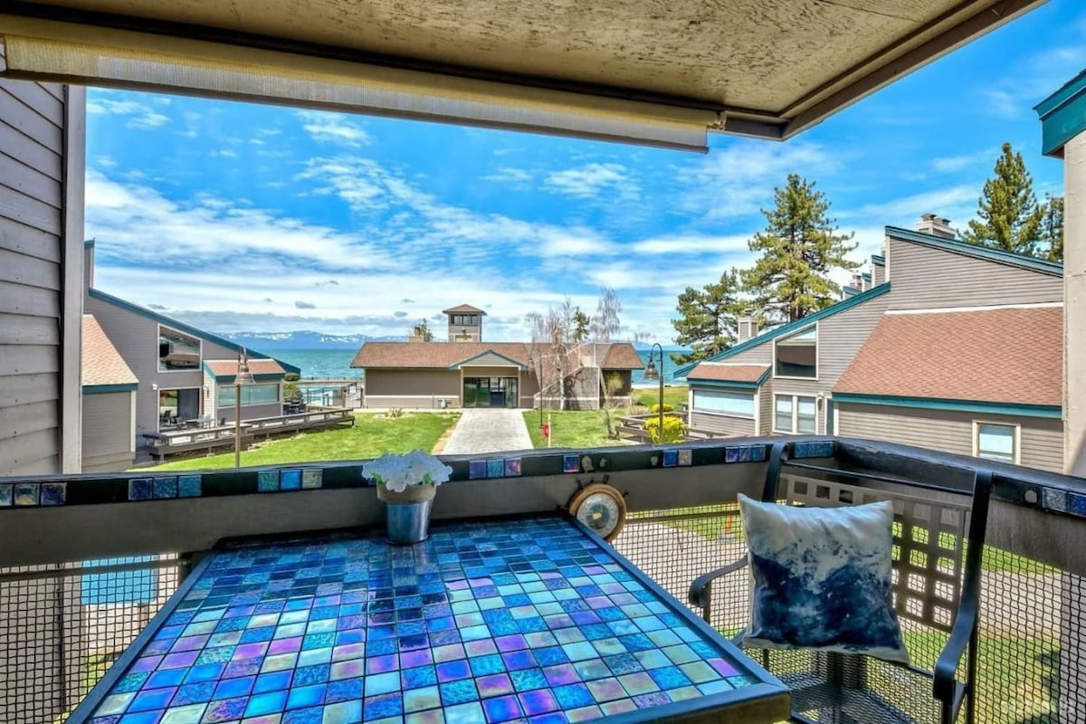 Malaking pribadong beach/pier sa Lake Tahoe sa kabila lang ng kalye, napakadaling lakarin. Mga minuto sa skiing at kainan. Major resort ski shuttle pickup sa kabila ng kalye. Gas fireplace at rustic finishes. Kumpletong kusina. Pribadong banyo sa unit. 1 milya ang layo ng Safeway/Starbucks. Mabilis na internet. Covered porch. Bawal manigarilyo, bawal ang mga alagang hayop. Bukas ang pool sa tag - init. Katabi ng Paglulunsad ng Bangka. Ang Rustic flooring at sound proofing sa pagitan ng mga yunit ay nagdagdag ng 11/2017. Walang refund dahil sa lagay ng panahon o anupamang dahilan.