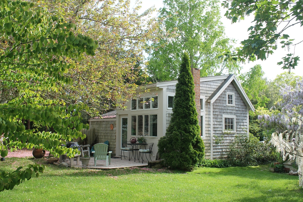 Kasayahan ng mag - asawa/pamilya sa buong taon sa isang kaakit - akit, pribadong Cape Cod cottage w/ screen sa beranda, patyo at shower sa labas (sa Nobyembre/Disyembre/Jan ay nagiging isang Gingerbread cottage). Sa loob: bukas na sala w/ queen bed at sitting space. Ang hagdan ay humahantong sa isang maikling taas na sleeping loft w/ 2 twin bed. Kumpletong banyo w/ indoor shower. Maliit na kusina - tingnan ang paglalarawan sa ibaba. Nagbibigay kami ng tsaa, lokal na kape, pampalasa, pampalasa, gas grill, ice chest, tuwalya sa beach at upuan. Para matulog nang hanggang 8 oras, ipagamit din ang aming Upper Room sa Airbnb.
