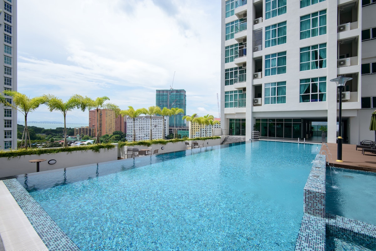 Our brand new cosy suite is perfectly located in the heart of Penang with easy access to local tourist attractions. Japanese/Korean Restaurants & 7-11 convenience store are right below our home! Local food, KFC & Pizza Hut is within 5 mins walk! We Provide • Great hospitality services • Sunrise & City View • PS3 Entertainment & Netflix • 1 Private car park • 100 Mbps WiFi • Infinity Pool View • Fully air-conditioned If you like a quiet & cosy place in this busy city, Don't Wait, Book Now!!!