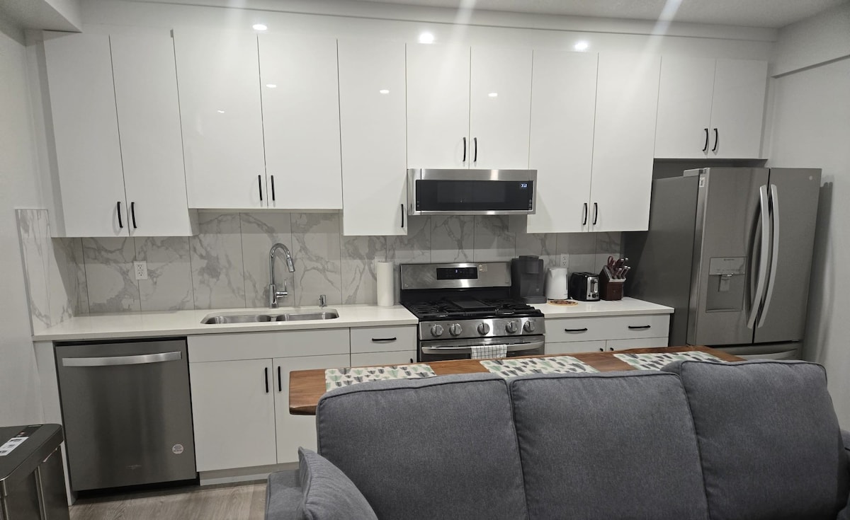 Ang legal na yunit ng basement na ito na may sariling kontrol sa init ay nag - aalok ng perpektong timpla ng modernong pamumuhay, kaluwagan at kaginhawaan, na may pakiramdam sa pangunahing palapag. Ito ay isang magiliw na kapaligiran, perpekto para sa paglilibang sa mga bisita o simpleng pagrerelaks pagkatapos ng mahabang araw. Ang mga silid - tulugan ay mga komportableng retreat na may mga queen - size na higaan at maraming unan para sa iyong kaginhawaan. Nagbibigay ang lokasyong ito ng madali at mabilis na access sa mga pangunahing tindahan, restawran, istasyon ng gas at bangko. 3 minutong biyahe ito papunta sa Anthony Henday at 20 minutong biyahe papunta sa downtown
