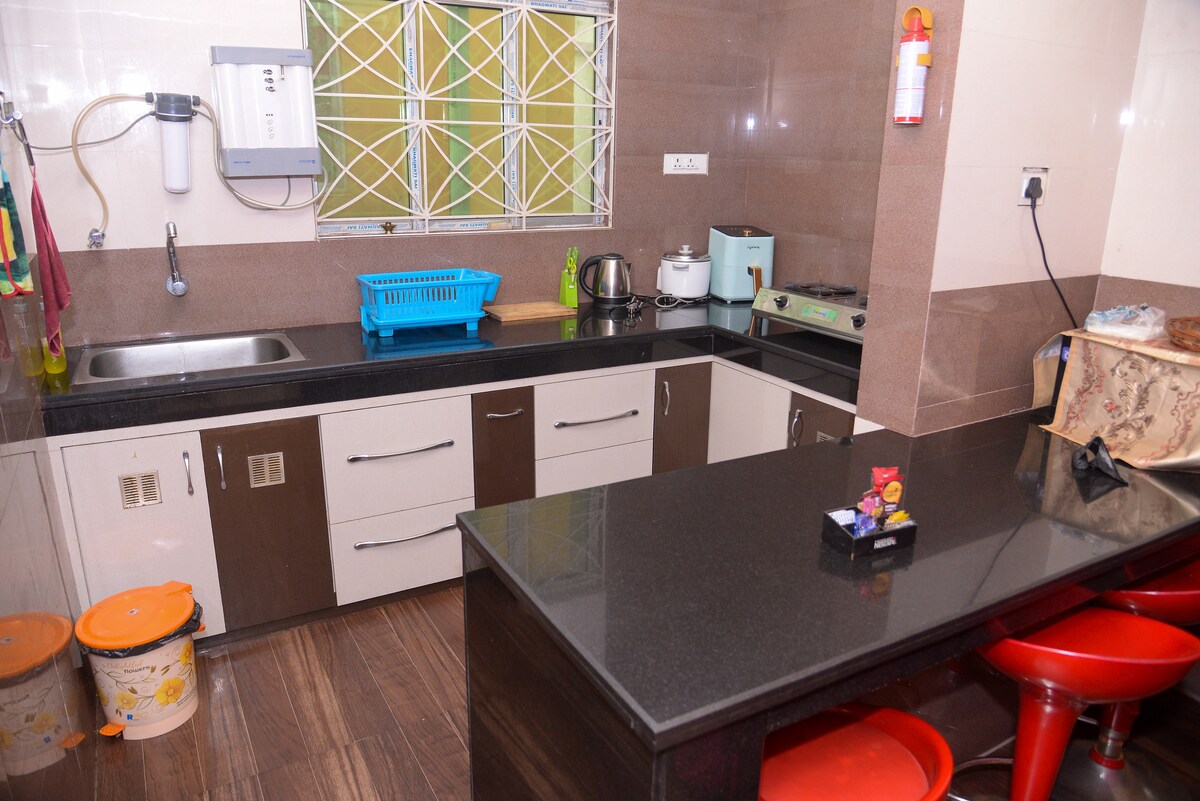 Mamalagi sa maluwag at de‑kalidad na 2BHK na tuluyan sa sentro ng Kolkata na perpekto para sa mga pamilya, grupo, at matatagal na pamamalagi. Nag‑aalok ang Nestora Stays ng ginhawa ng tuluyan na may dating ng marangyang hotel, at nasa magandang sentrong lokasyon ang lahat ng ito. Hindi tulad ng mga karaniwang kuwarto sa hotel, makakakuha ka ng buong apartment na may maluwag na espasyo, privacy, at lahat ng pangunahing amenidad. Pumupunta ka man sa Kolkata para sa paglilibang, mga medikal na pangangailangan, o trabaho, idinisenyo ang tuluyan na ito para mabigyan ka ng kaginhawaan, kaginhawaan, at sulit na presyo—lahat sa iisang lugar.