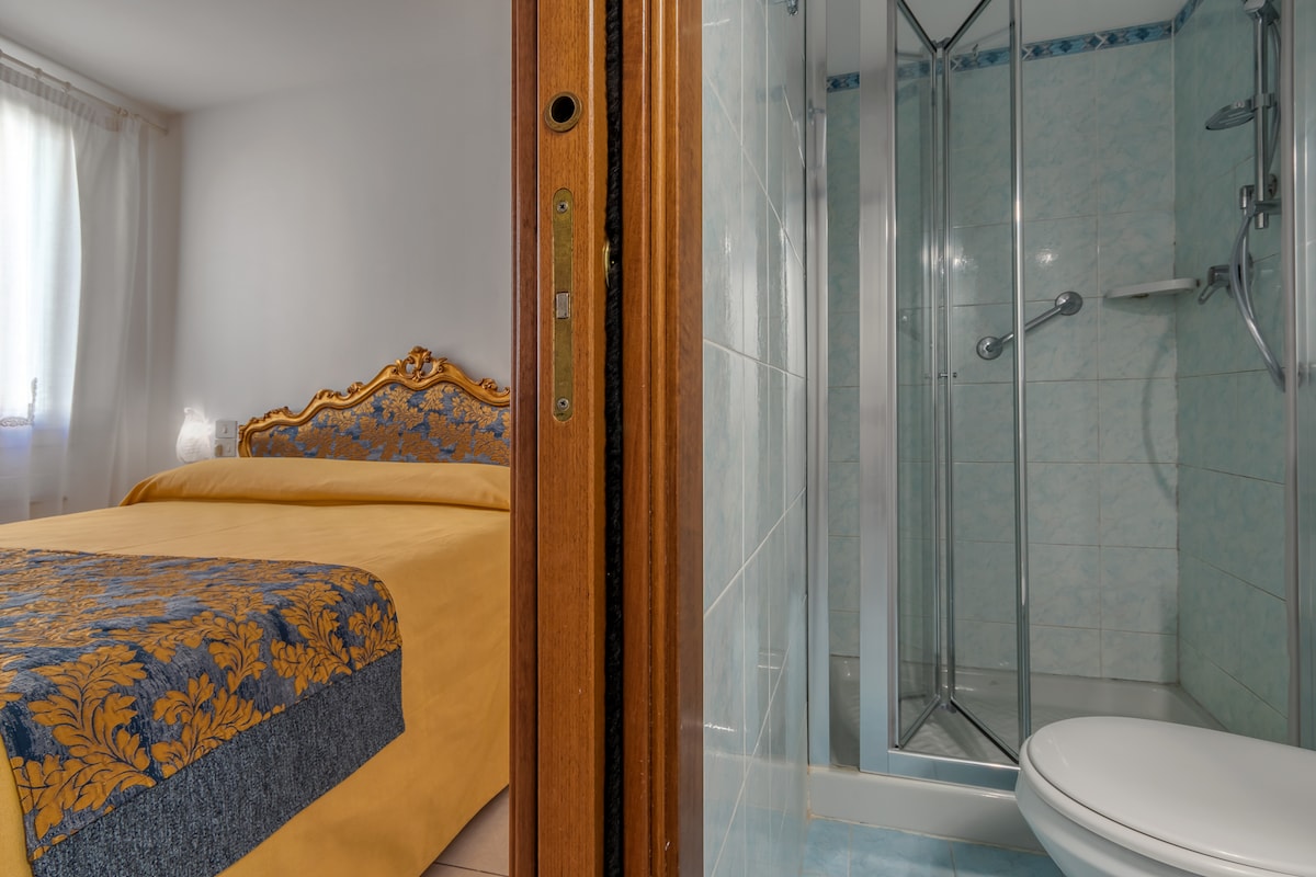Maganda at maaliwalas na double room sa aming boutique style hotel, na may komplimentaryong almusal, takure, Wi.Fi, safe, ensuite bathroom, A/C o heating, ayon sa panahon, SKY tv (cable). Ang hotel ay nakalagay 5 minutong lakad papunta sa istasyon ng tren ng S.Lucia at Piazzale Roma (istasyon ng bus), ilang hakbang lamang ang layo mula sa Grand Canal. Hindi palaging 24 na oras ang serbisyo sa pagtanggap, kaya gusto naming malaman ang inaasahang oras ng pagdating mo. Hindi kasama ang buwis sa lungsod sa presyo (1.00 € bawat tao bawat gabi upang mabayaran lamang ng cash).