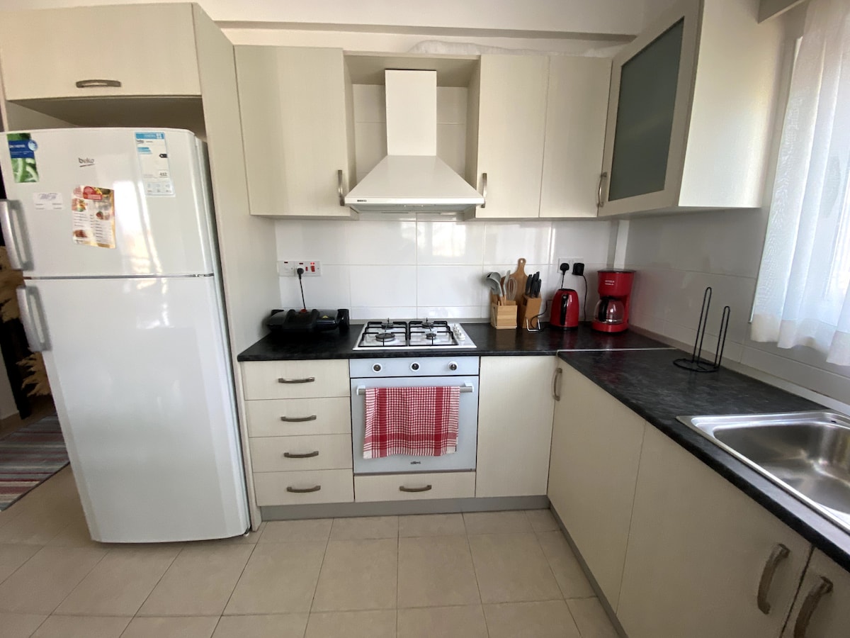 Bagong-bagong marangyang 2BR na may mga malalawak na tanawin ng dagat sa hilagang Cyprus, perpekto para sa mga pamilya at magkarelasyong naghahanap ng ginhawa at estilo. Matatagpuan sa ligtas at magarang complex na may seguridad sa lugar buong araw, marangyang elevator, rooftop infinity pool, gym, sauna, at mini market sa lugar. Maaaring maglakad papunta sa mabuhanging beach at Othello Castle. Mabilis na Wi‑Fi, ganap na AC, moderno at kumpletong kusina, washer/dryer. Libreng paradahan at pagsingil sa EV. Tahimik at ligtas na lugar malapit sa mga malinis na beach sa Karpaz.