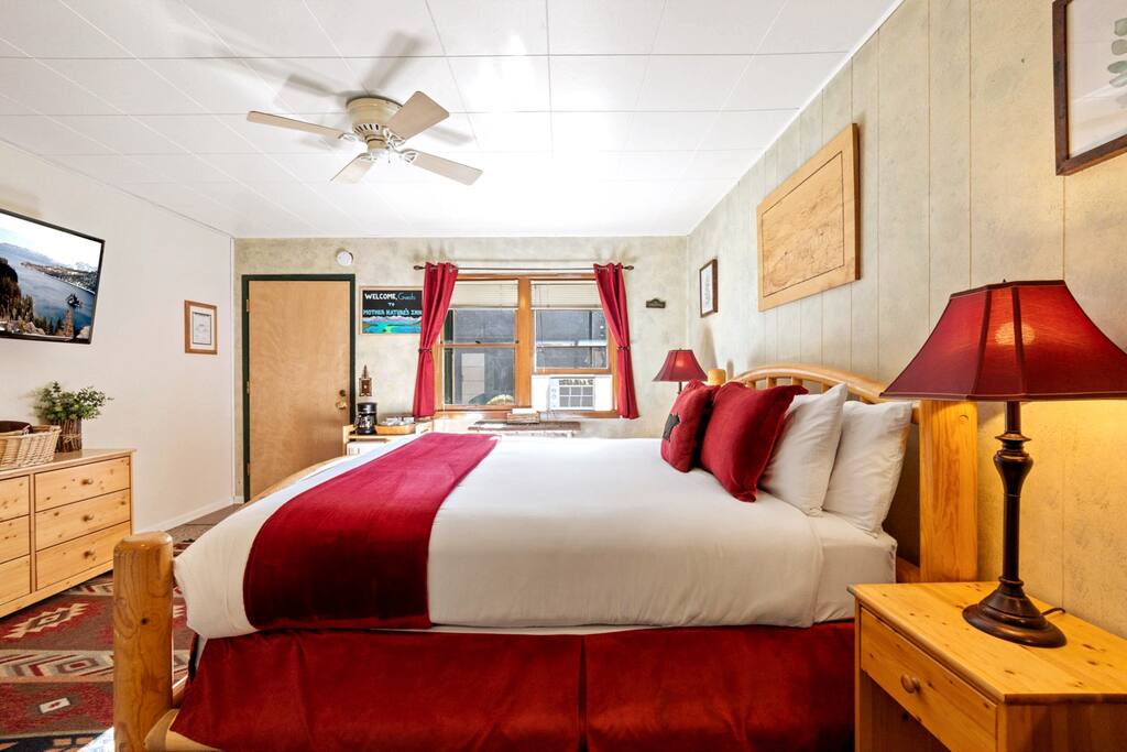 Maligayang pagdating sa Mother Nature's Inn, kung saan natutugunan ng kagandahan ng kanayunan ang sentro ng Lungsod ng Tahoe. Nagpasya na "classic Tahoe," nagtatampok ang aming komportableng inn ng cabin - style na dekorasyon at mga pangunahing hakbang sa lokasyon mula sa mga tindahan, kainan, pub, at Commons Beach. Matatagpuan kami ilang minuto mula sa Palisades, Alpine Meadows, at Homewood. Bagama 't hindi isang high - end na hotel, nag - aalok kami ng mga malinis, simple, at komportableng kuwarto na hinahanap ng aming mga bisitang mahilig sa kalikasan pagkatapos ng isang araw ng mga paglalakbay sa Tahoe. Mainam para sa mga aso.