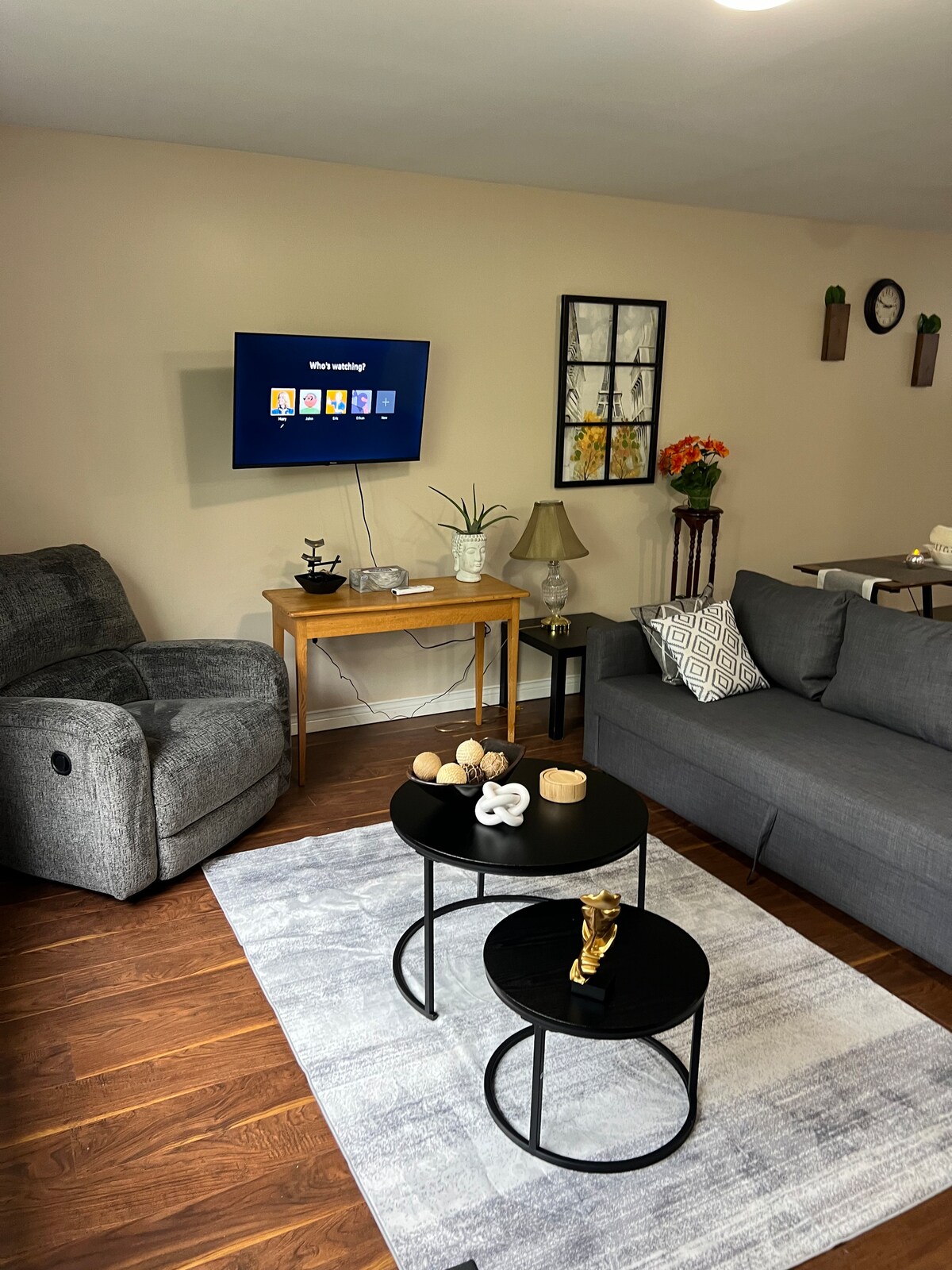 Maganda at maluwag na 2 bedroom apartment na matatagpuan sa isang kakaibang kalye sa Stratford. 10 minutong biyahe lang papunta sa gitna ng Charlottetown, kung saan makakaranas ka ng mga lokal na tindahan, restawran, bar, at marami pang iba! Nilagyan ang paupahang ito ng kumpletong kusina, na may mga pinggan, kubyertos, at lutuan. Moderno at bago ang muwebles, habang binibigyan ka rin ng komportableng "parang bahay" na vibe. Tangkilikin ang kapayapaan at katahimikan pagkatapos ng mahabang araw ng mga aktibidad sa Isla.