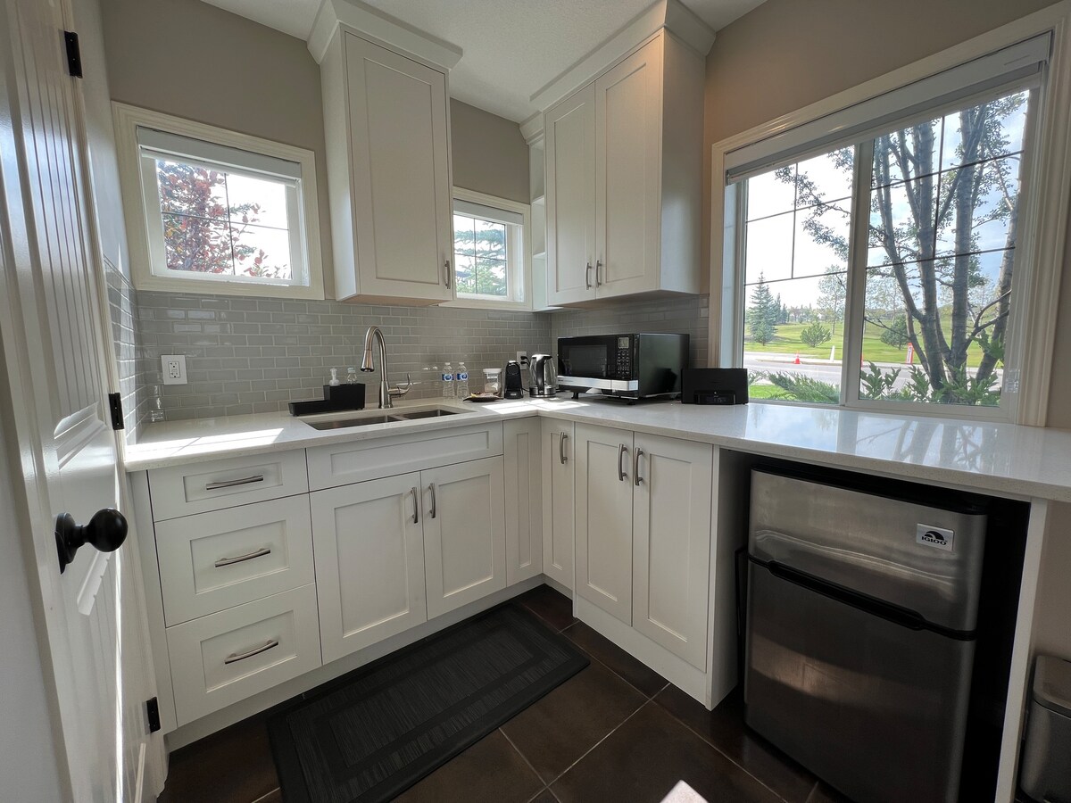 Masiyahan sa taglamig at magsimula at magrelaks sa tahimik at naka - istilong lugar na ito. Masiyahan sa privacy ng isang ganap na hiwalay na tuluyan na may tanawin ng Canada Olympic Park (Winsport) at paglubog ng araw sa gabi. Mga marangyang feature kabilang ang central air conditioning, quartz counter, hardwood floors at rejuvenating air tub. Matatagpuan sa maikling lakad papunta sa Bow River at mabilis na mapupuntahan ang Trans - Canada Highway (Hwy 1) para sa iyong mga paglalakbay sa bundok! Kasama ang pribadong solong pinainit na garahe at paradahan sa labas ng kalye para sa iyong panandaliang pamamalagi o pangmatagalang pamamalagi.