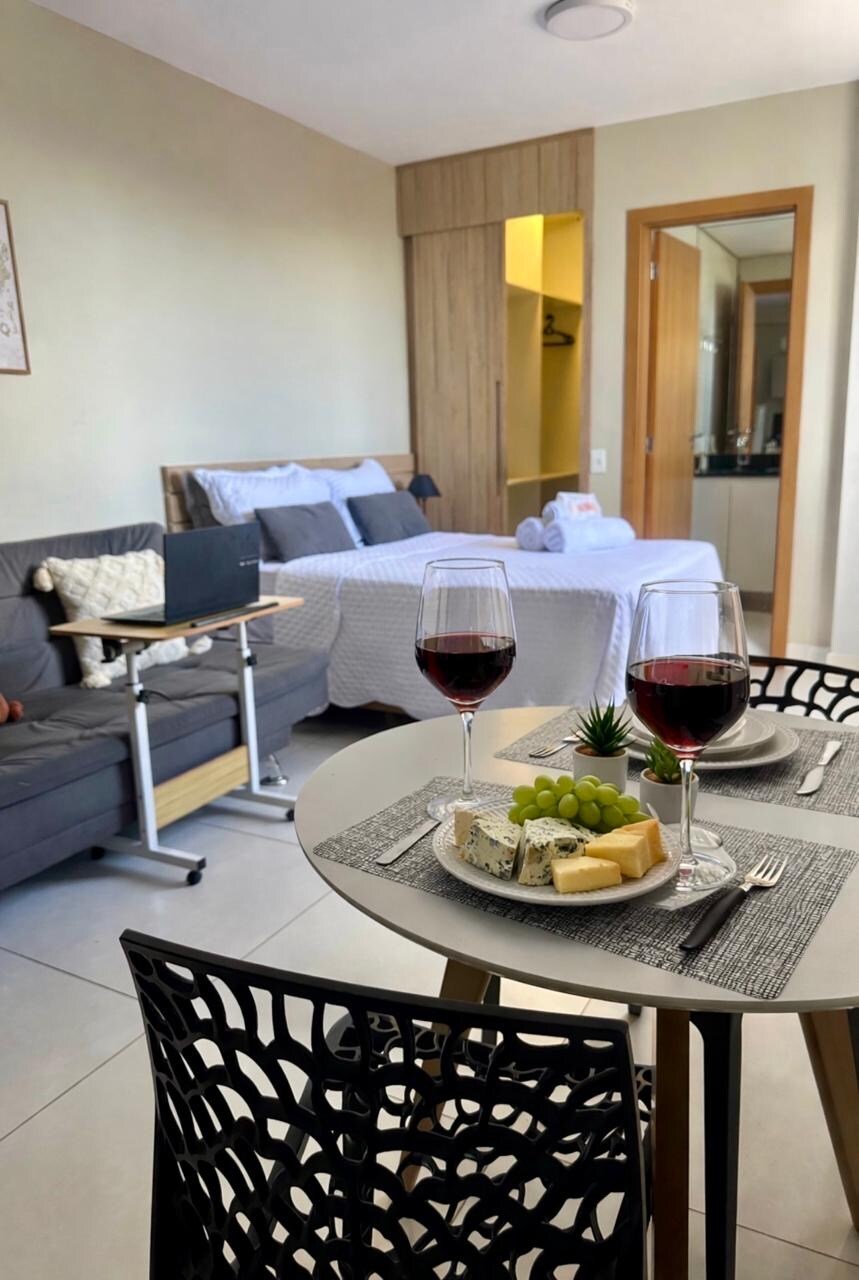 Modern Apartment, 32m2, na matatagpuan sa pinakamagandang punto ng Sion. Pagsasanay sa kusina na may minibar, cooktop, TV (mga bukas na channel/Netflix), air conditioning, hairdryer, electric kettle at internet. South Zone, sa tabi ng JK Square at Bandeirantes Avenue, na nakaharap sa Supermarket. Rooftop ng gusali na may gym, sauna, swimming pool, sala at kusina ng komunidad (tubig, ice machine). Available ang mga on - demand na paglilinis. Ligtas na gusali na may 24 na oras na concierge. *Walang kasamang garahe.