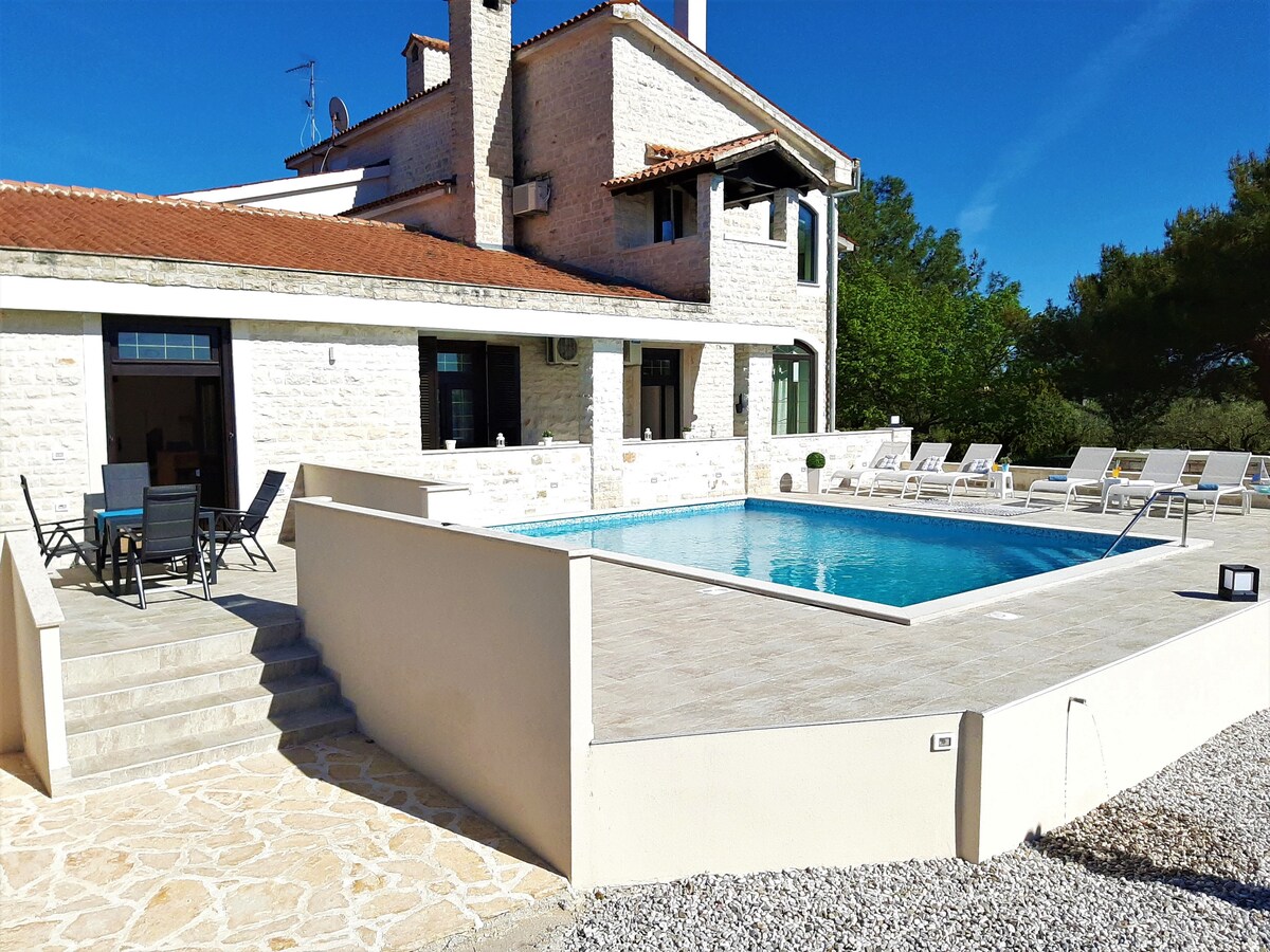 Magandang tradisyonal na estilo ng Istrian villa na may sariling pool. Sa isang tahimik na nayon na 1.5 km papunta sa dagat, malapit sa mga tindahan at restawran. Ginagawang perpekto ang 3 higaan./3 banyo para sa mga pamilya at iba pang maliliit na grupo. Kusina at BBQ na may kumpletong kagamitan. Air Con. Libreng WiFi.