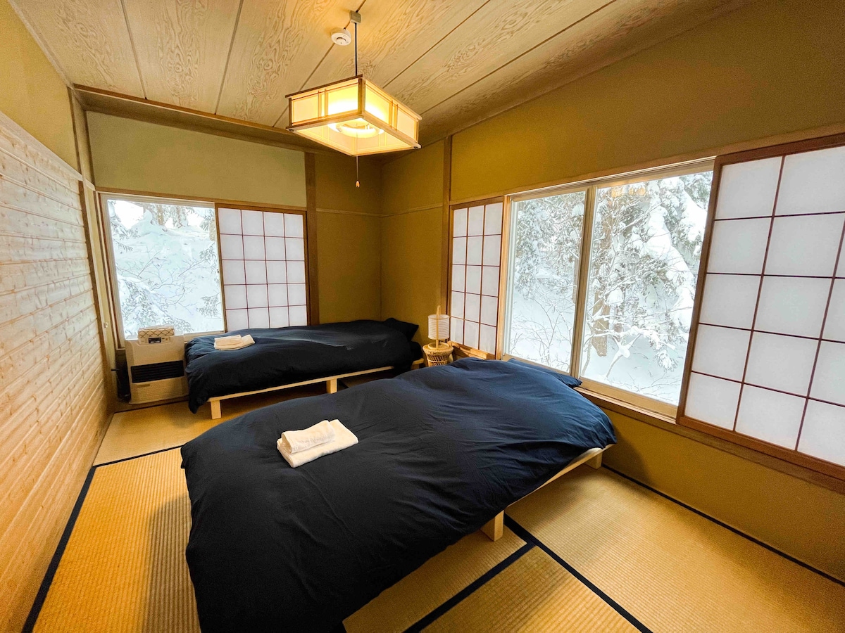 Tandaan: Kinakailangang iparehistro ng lahat ng bisitang mamamalagi sa Japan ang kanilang personal na impormasyon para sa rekord. Isa itong bagong gawang two - storey premium na bahay - bakasyunan na may kabuuang 171 metro kuwadrado na may 4 na kuwarto, 1 tatami room, 2 pribadong toilet, 2 malalaking banyo na may mga bathtub, at 1 oversized open kitchen. 9 3 km papunta sa White Horse Eight Otail Roots Ski Resort, 2 km papunta sa Wulong 47 Ski Resort.Napapalibutan ng mga bundok, paglalakad o jogging sa malapit, na angkop para sa pamilya at mga kaibigan na gumugol ng magagandang pista opisyal kasama ang pamilya at mga kaibigan. Fully furnished wifi, Fully furnished, Floor heating, Air conditioner, Drying room, Washing machine, Hot tub. May mga pangunahing amenidad Mga tuwalya sa mukha, mga tuwalya sa paliguan, tsinelas, at may libreng paradahan sa paradahan sa harap ng pinto. Espesyal NA paalala: Late check - out nang walang dahilan 10,000 yen/oras, 50,000 yen na multa para sa panloob na paninigarilyo. Maagang Pag - check in (Maagang Napagkasunduang): 3,000yen/1 oras. Late check out (napagkasunduan nang maaga): 3,000JPY/1hour.