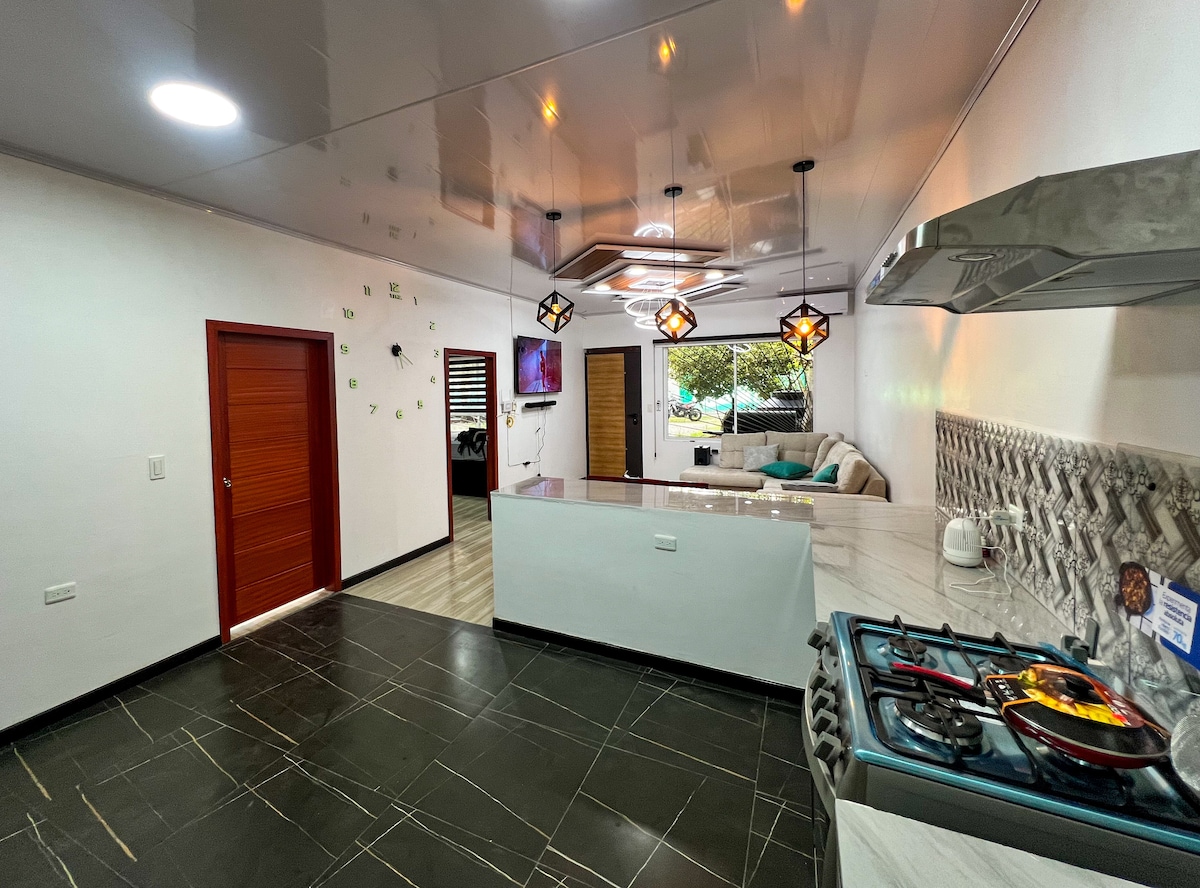 Ang natatanging tuluyan na ito sa lungsod ay may kagandahan at nakakarelaks na konsepto na magpaparamdam sa iyo na kamangha - mangha, na may bukas na konsepto na American style na kusina, na nagbibigay sa bisita ng opsyon na magluto at makipag - usap sa mga tao sa sala habang tinatangkilik pa rin ang iyong paboritong programa sa isang 55"4K UHD Modern Samsumg Ultra Moderna 4K UHD, at may mga ilaw na LED at Neon na magbibigay sa iyo ng natatanging karanasan. Mayroon itong maluwang na kuwarto na may malalaking bintana na nagbibigay - daan sa emra ng liwanag. at mararangyang banyo.