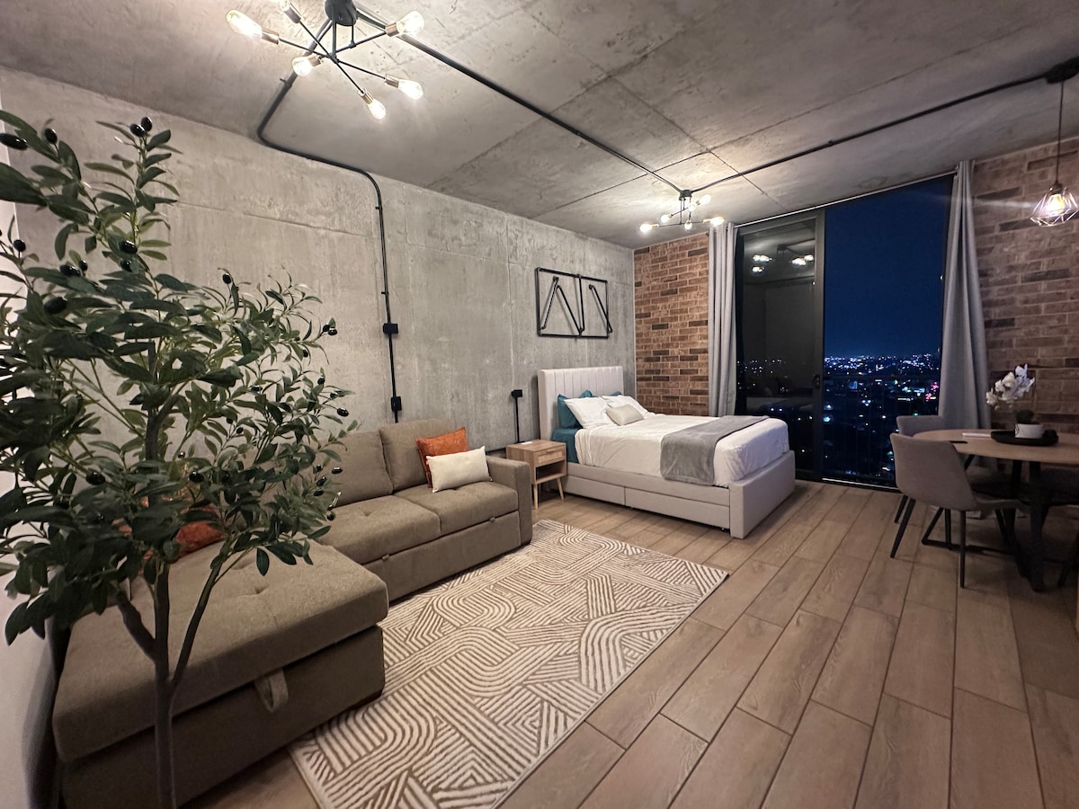Madiskarteng matatagpuan ang loft na ito sa gitna ng lungsod, sa 30 palapag na gusali, na may pool sa tuktok na palapag at mga kamangha - manghang tanawin ng lungsod. Na - invoice ito. Mga oras sa ilang minuto sa pamamagitan ng kotse papunta sa mga lugar na interesante mula sa loft (tinatayang lagay ng panahon, depende sa trapiko). Macroplaza y Paseo Santa Lucia - 2 Barrio Antiguo - 6 Fundidora, Cintermex, Arena, at Banamex Auditorium - 10 CAS - 10 Estadio Tigres y Sultanes - 15 Banorte Stadium - 18 Konsulado - 25 Rayados Stadium - 25 Paliparan - 40