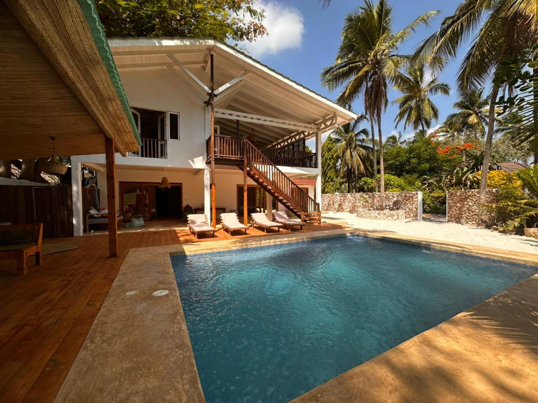 Tumakas sa aming 4 na silid - tulugan na beach house sa Matemwe, Zanzibar. Matatagpuan sa maaliwalas na hardin mismo sa malinis na puting sandy beach, nag - aalok ito ng mga nakamamanghang tanawin ng karagatan, turquoise na tubig, at masiglang buhay sa dagat na ilang hakbang lang ang layo. Masiyahan sa pribadong pool, maluwang na kusina at sala, TV, internet, 24/7 na kuryente at seguridad. Sa pamamagitan ng beach volleyball, darts, at panlabas na upuan, perpekto ito para sa mga pamilya at kaibigan na naghahanap ng kasiyahan at pagrerelaks sa tabi ng dagat.