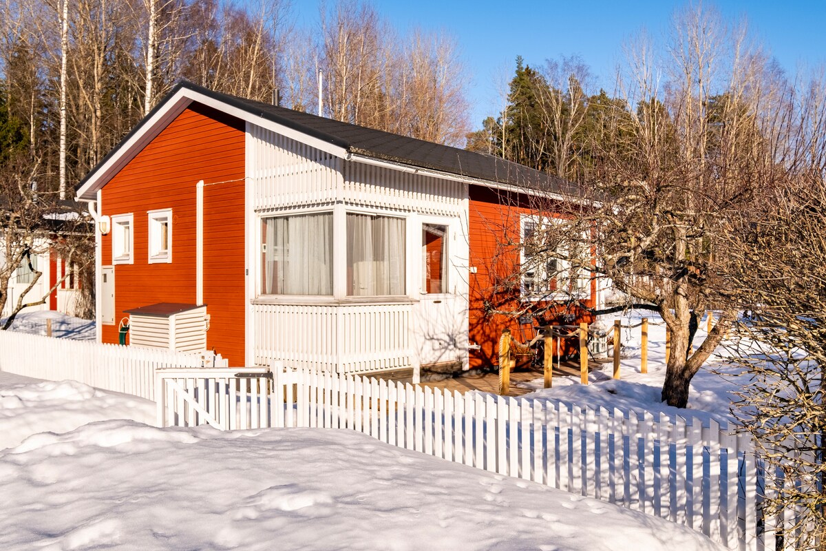 Maligayang pagdating sa Villa Lilli! Isang cottage na 55m2 sa atmospera sa Nupuri, Espoo. (+hiwalay na silid - tulugan sa outbuilding) Hanggang 6 na maximum ang tulog. Tandaan: Ang ikaanim ay isang footstool na nagiging isang kama, kaya 3 natutulog sa sala. May dagdag na bayad na 50e/araw ang outdoor hot tub. Libreng Wi - Fi Tandaan! Ang iyong sariling mga linen at tuwalya o linen at tuwalya nang may karagdagang bayarin na 15E/tao. Hindi kasama sa presyo ang paglilinis. Dapat gawin ang maingat na panghuling paglilinis bago mag - check out o maaaring mag - order ng huling paglilinis para sa 75e.