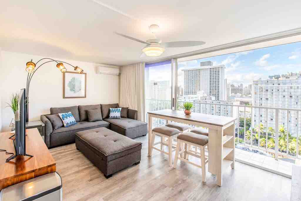 ALOHA! (Fully Renovated in June of 2025 / 1 free parking. There is a top-quality water purifier inside the unit, so there is no need to buy bottled water. This location is on the " quieter" side of Waikiki. This is a newly remodeled unit with all brand furniture. located on the 12th floor..500 SQ FT, 120 SQ FT( large balcony) has City view. easy self-check-in. spacious, bigger than most Open 1 bedroom. 1 Queen Size Bed,1 full bed and 1 Queen sofa bed and can accommodate up to 5 people.