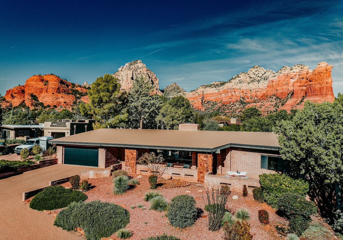 Maligayang pagdating sa Halona House sa West Sedona! Masiyahan sa mga malalawak na tanawin ng bundok ng Red Rock, nakamamanghang pool, at bagong Jacuzzi. Nagtatampok ang maluwang na modernong tuluyang ito sa kalagitnaan ng siglo, na idinisenyo ng lokal na arkitekto, ng mga vintage na muwebles at 3 sobrang malalaking kuwarto. Sa pamamagitan ng mga sliding glass door sa maraming kuwarto, i - enjoy ang walang aberyang panloob - panlabas na pamumuhay. Maglakad papunta sa mga trail, nangungunang restawran, at tindahan, lahat sa isang tahimik at tahimik na kapaligiran. Itinatampok sa MALAYONG Travel Magazine bilang isa sa mga nangungunang Sedona Airbnbs ng 2022!
