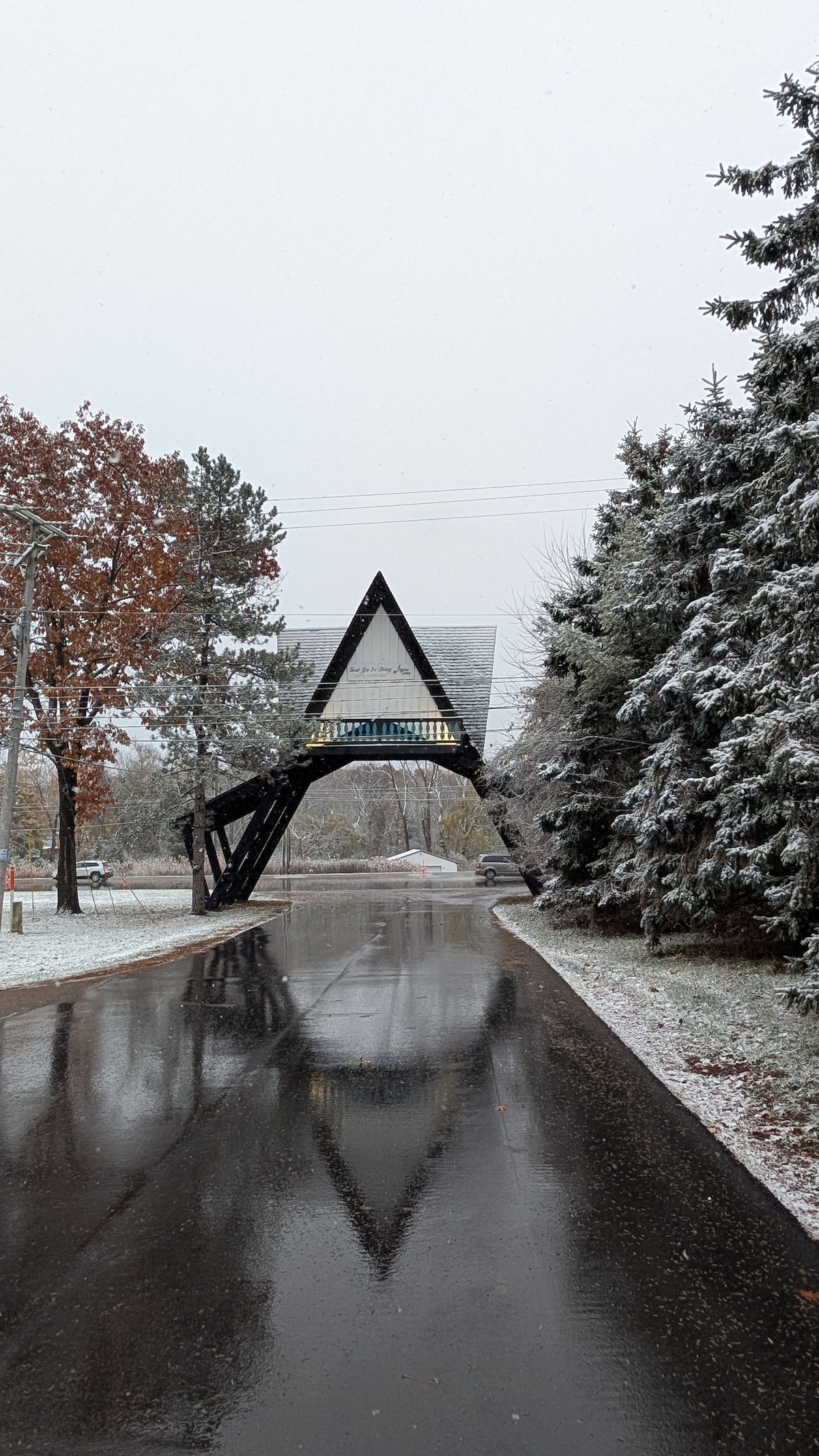 1964 Mid Century A - Frame - romantikong bakasyon. Maikling lakad papunta sa lawa, malaking makahoy na lote, panlabas na fire pit, kainan, ihawan ng BBQ, hot tub at mga bisikleta. Malaking banyo w/ jacuzzi tub, bukas na floor plan w/ malaking kusina at living area w/ electric fireplace. Dalawang silid - tulugan sa itaas. May queen sized bed, work space, at balkonahe ang master. Front bedroom w/2 futon at tinatanaw ang sala. Basement game room w/ sauna, pool table, foosball, shuffleboard, Jenga & laundry. Malapit sa shopping, golf, ski resort, cider mill.