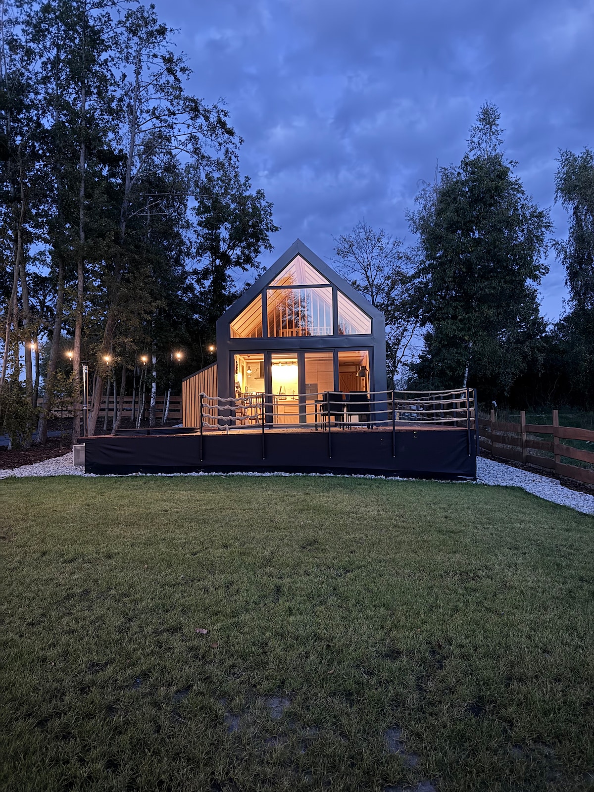Ang Inn ay isang moderno, pinainit/naka - air condition, kumpleto sa gamit na cottage na napapalibutan ng mga kagubatan at lawa. Mayroon ding eksklusibong hardin na humigit - kumulang 1000m2. Sa malaking 40m2 terrace, may mga muwebles para sa pagrerelaks, pag - iimpake, barbecue, payong. Matatagpuan ang cottage may 160m mula sa beach, mga 700m papunta sa mga beach. Available ang kayak. Mayroon kaming LAHAT NG KASAMANG patakaran, ibig sabihin, magbabayad ka nang isang beses para sa lahat. Walang karagdagang bayarin para sa mga alagang hayop, panggatong, utility, paradahan, paglilinis, atbp.