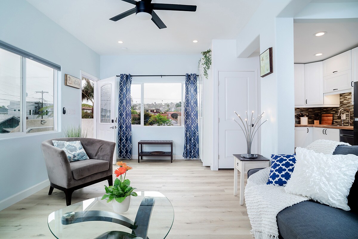Tangkilikin ang tunay na kaginhawaan sa magandang inayos na condo na ito sa Pacific Beach. Mga smart TV sa bawat kuwarto, na puno ng natural na sikat ng araw, nakakapreskong hangin ng karagatan at perpektong lokasyon - dalawang bloke lang mula sa bay beach, mga palaruan, mga fire pit sa beach, at boardwalk. Wala pang isang milya ang layo ng makulay na pangunahing kalye ng PB (Garnett Ave) at karagatan. May mga upuan sa beach, tuwalya, surfboard, at boogie board na magagamit mo. Bago ang mga higaan (2023) - 1 memory foam at 1 hybrid.