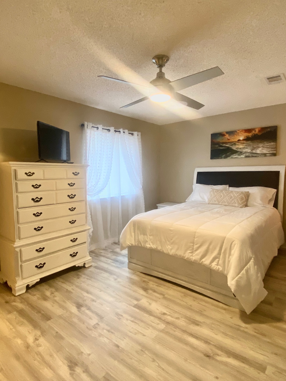 Ang aking asawa at ako ay nagmamay - ari at nakatira sa bahay, ngunit ang bahagi ng bahay na ginagamit namin bilang Airbnb ay may pribadong pasukan ng bahay, silid - tulugan, banyo, at lugar ng sala. Pati na rin ang paggamit ng washing machine at dryer. 2 minuto ang layo namin mula sa WalMart, 15 minuto mula sa mga beach ng Okaloosa Island, at 20 minuto mula sa Destin. Mayroon kaming coffee machine, microwave, propane grill, at mini refrigerator set up. Pinapayagan namin ang mga alagang hayop sa $50 na karagdagang singil at may malaking bakod sa bakuran para sa kanila.