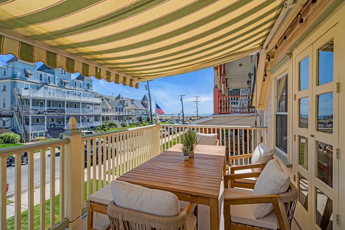 Mararangyang tabing - dagat, 1.5 bloke mula sa OG Beach, malapit sa lahat. ☞ Victorian na may mga modernong kaginhawaan ☞ Pangunahing silid - tulugan na may tanawin ng karagatan ☞ 4 na silid - tulugan: King / Queen/Full / (2) Twin XL Mga banyo sa☞ spa: pinainit na sahig, ulan ☞ Mga marangyang linen ☞ na kumpleto sa kagamitan sa kusina; mga high - end na kasangkapan ☞ Sala: Smart TV, high - speed internet Anim na puwesto sa☞ dining area, available ang mga board game ☞ Office space ☞ Porch na may mga pangunahing kailangan sa beach ☞ AC/heating, in - house laundry ☞ Maglalakad papunta sa Ocean Grove at Asbury Park
