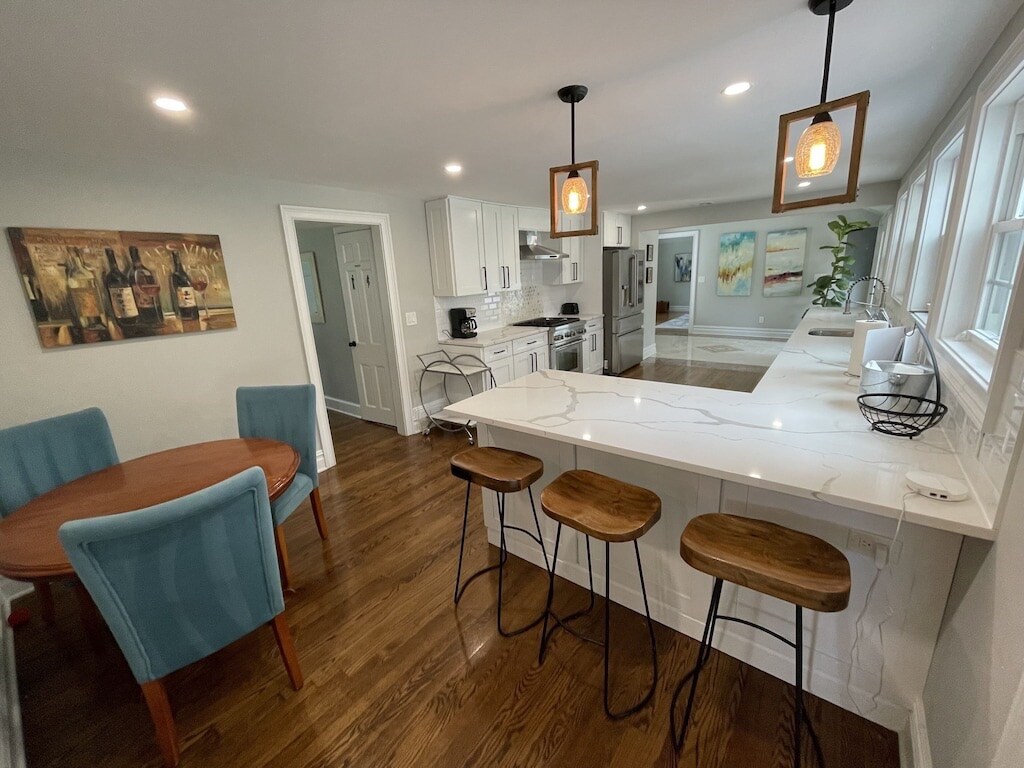 Ganap na na-renovate na kakaibang Victorian na may maaliwalas na balkon sa harap, na matatagpuan 3 1/2 maikling block mula sa beach malapit sa Great Auditorium at ilang maikling block mula sa sentro ng bayan. Wala pang 2 block ang layo ang bahay mula sa tulay sa Asbury Park. Mayroon ng lahat ng kagamitang pambahay kabilang ang mga kubyertos at pinggan at kutsara. 1 Gig internet. Mga pinakabagong TV sa lahat ng kuwarto. Kuwartong may queen-size na higaan at kumpletong banyo sa unang palapag. Kuwartong may naaangkop na king-size na higaan, kuwartong may queen-size na higaan, kuwartong may single na higaan, at kumpletong banyo sa ikalawang palapag na may opisina. STR# NSTR23-0022