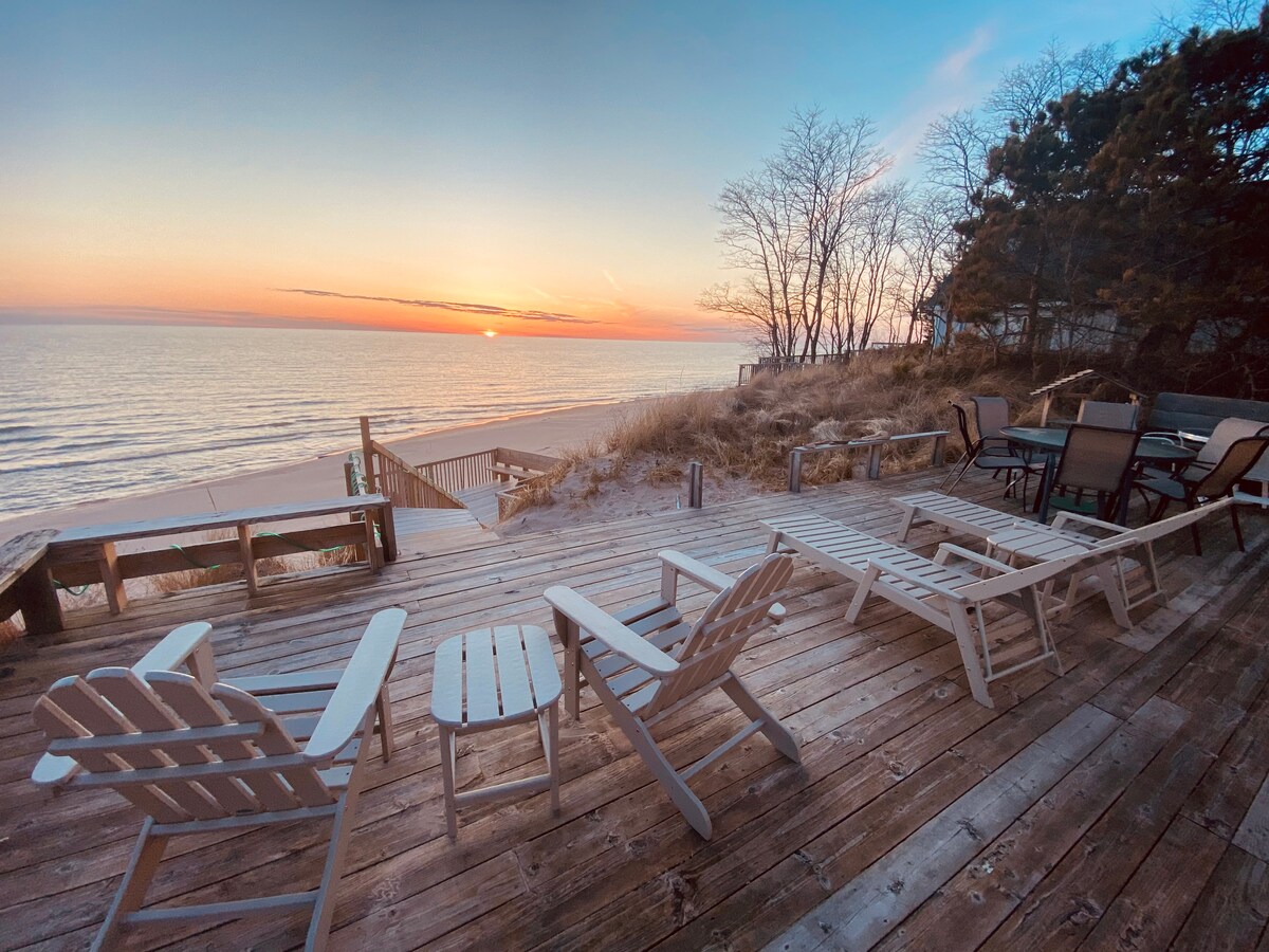 Tumakas sa ganap na inayos na 1,617 talampakang kuwadrado na tuluyan sa tabing - dagat na may 135’ ng pribadong harapan ng Lake Michigan. Masiyahan sa mga nakamamanghang paglubog ng araw mula sa open - concept na kusina o vaulted - ceiling na sala na may malawak na bintana. Sa tag - init, magrelaks sa pribadong beach; sa taglamig, komportable sa tabi ng fireplace pagkatapos humanga sa mga nakamamanghang pormasyon ng yelo. Napapalibutan ng mga puno ng oak, pinagsasama ng tahimik na bakasyunang ito ang mga modernong amenidad na may kagandahan ng kalikasan para sa talagang hindi malilimutang karanasan sa bakasyunan sa buong taon.