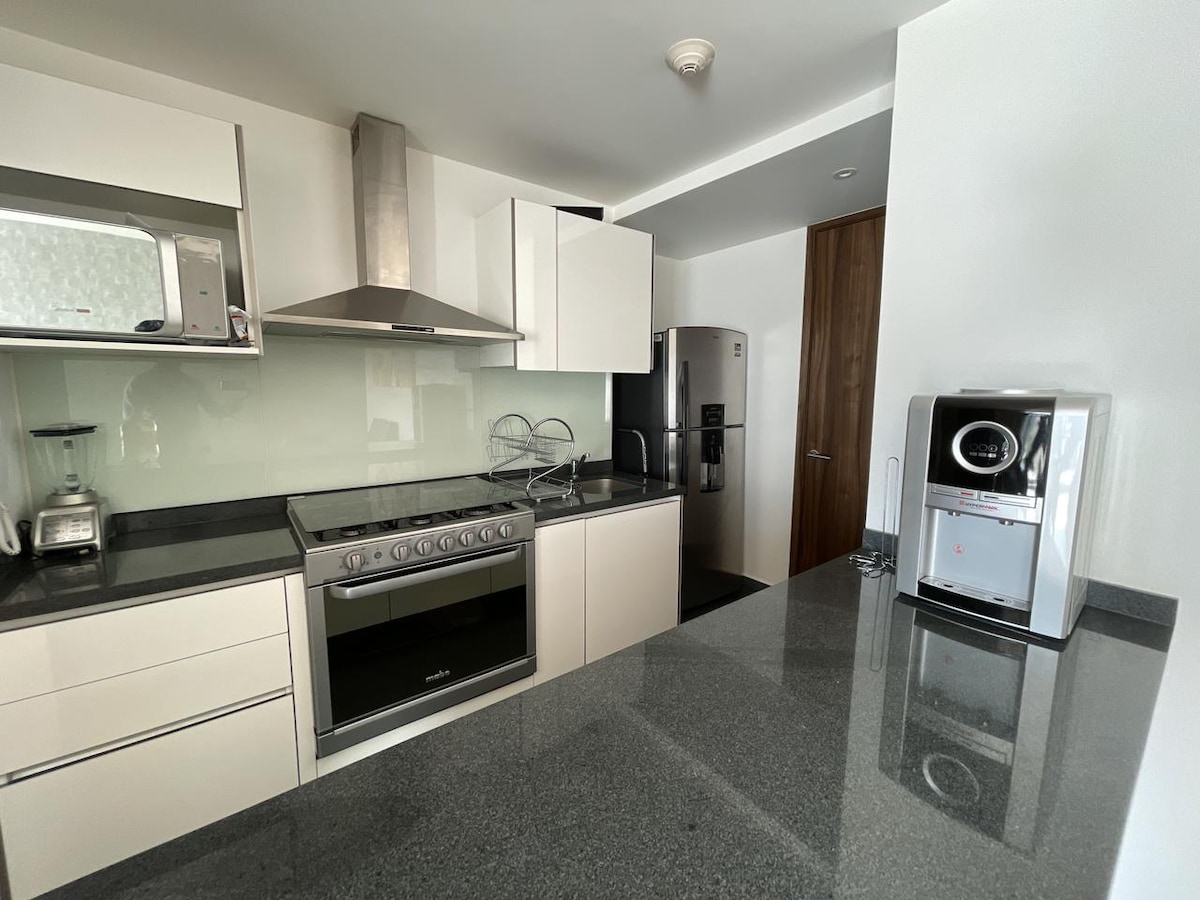 Mag‑enjoy sa pag‑tuloy sa sopistikadong apartment na ito sa gitna ng marangyang distrito ng Puebla. Makakapaglakad ka (1min) papunta sa Sonata mall, na puno ng mga restawran at tindahan. May mga de‑kalidad na amenidad (sauna, pool, gym, spa, atbp.) at iba't ibang kontrol sa seguridad sa tore. Mga 5 minuto lang ang layo ng Altix Tower sa Paseo Destino, at sakay lang ng charter bus para makapunta sa Mexico City. Magrerelaks ka at magiging komportable ka sa apartment na ito na may magandang dekorasyon.