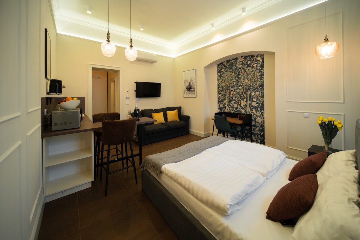 A lakás mindössze pár perces sétára található a város népszerű látványosságaitól. Autóra nem lesz szükséged, hiszen rövid sétával számos étterem, cukrászda, bár, kávézó, élelmiszerbolt és híres nevezetesség elérhető. A felújítás során csak a legjobb minőségű anyagokat, berendezéseket és bútorokat használtuk, hogy stílusos, luxus szálláshelyen pihenhess és maximális kényelemben érezd magad.
