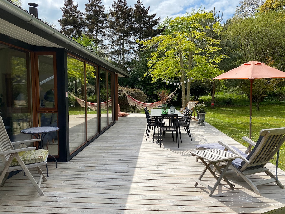 Maligayang pagdating sa ZenHouse. Hayaan ang iyong isip na ganap na idiskonekta habang tinatangkilik ang paglubog ng araw sa deck o nanonood ng Milky Way sa gabi sa hot tub sa labas. O bumiyahe pababa sa kagubatan at beach at maranasan ang ilan sa pinakamagagandang kalikasan sa Denmark. Maglakad - lakad sa Ridge Trail sa pamamagitan ng Geopark Odsherred na dumadaan mismo sa komportableng hardin. Ihurno ang iyong mga marshmallow o candy floss at sausage sa campfire. O basahin lang ang isang magandang libro sa tabi ng kalan na nagsusunog ng kahoy sa komportableng sala.