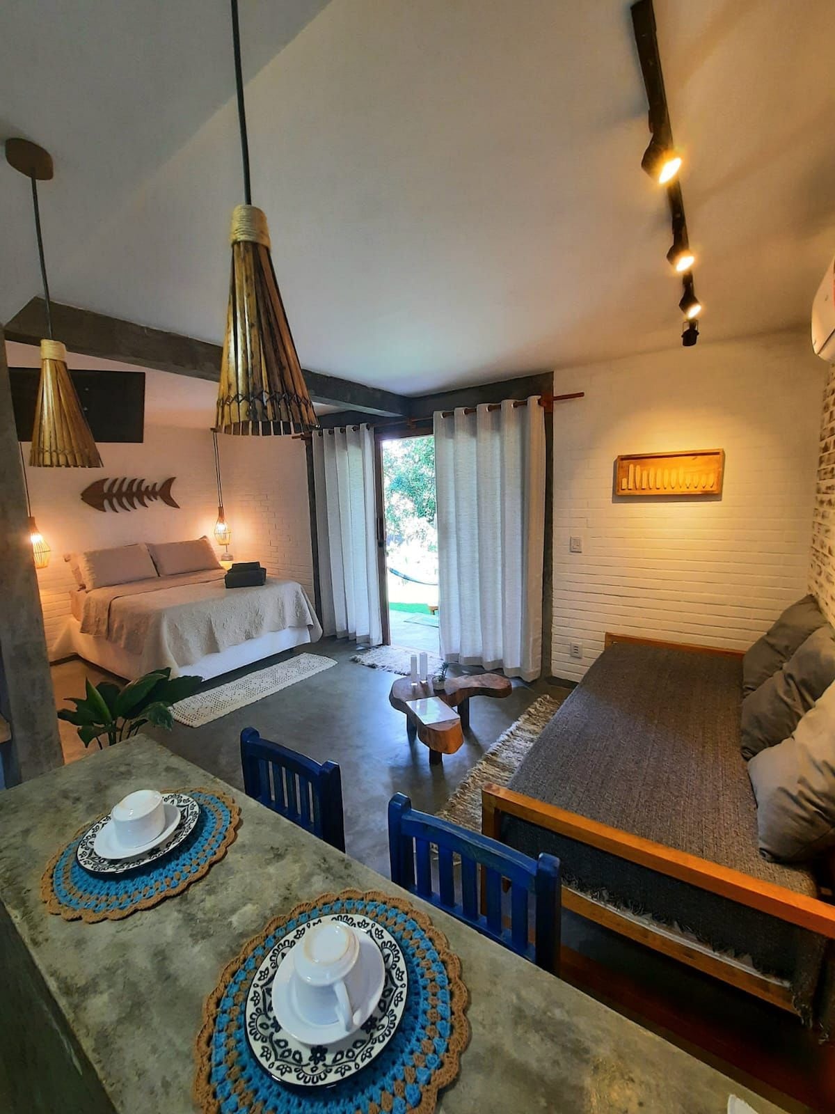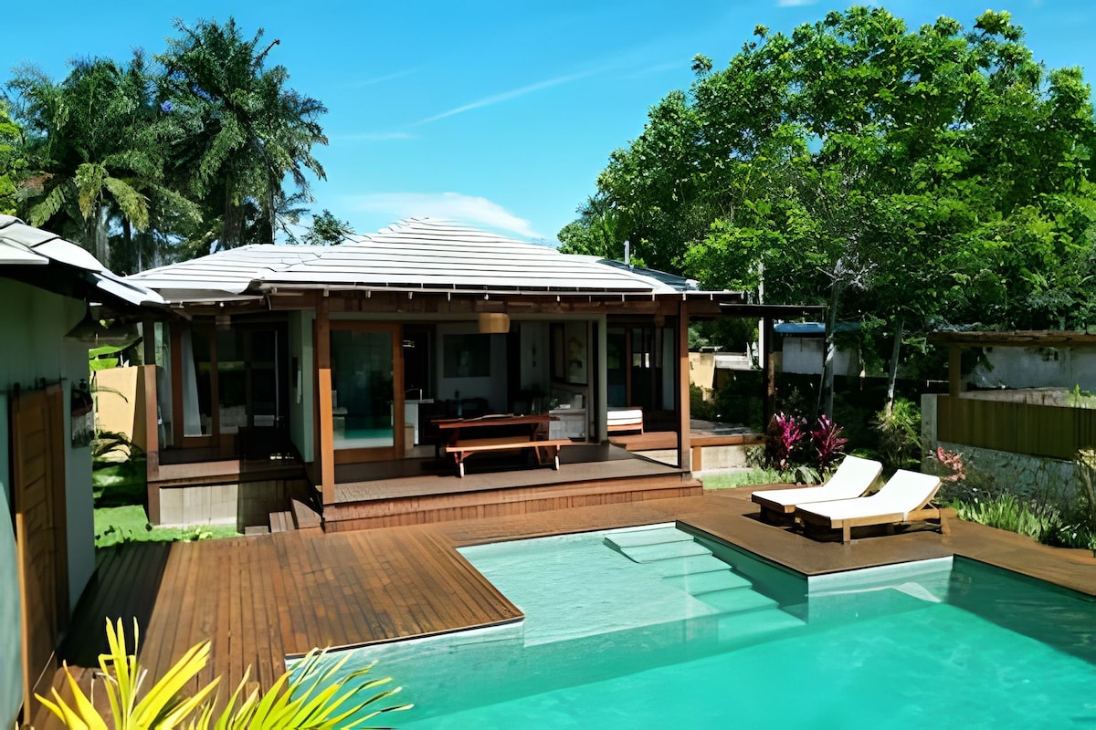 Ito ay isang kalmado at naka - istilong espasyo 200 metro mula sa beach, sa gitna ng mga katutubong halaman! Kami ay LGBTQIAP+ friendly at, dahil malayo kami sa sentro ng komunidad, nasisiyahan kami sa katahimikan at katahimikan ngunit limang minuto mula sa pagmamadali at pagmamadali! Ang suite kung saan matatanaw ang mga puno ay garantiya ng pahinga. Ang kusina na may kisame ng piaçava ay maganda at inihanda sa mga kinakailangan. Ang banyo ay may mga pribadong espasyo na nagsisiguro sa iyong intimacy. Magrelaks sa lugar na ito! Magugustuhan mo ito!