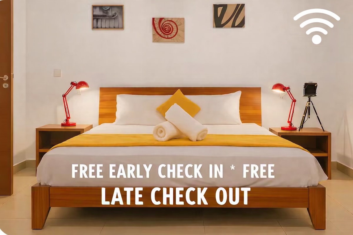 Kasama sa Tuluyan ng Superhost na si Reggie ang: 🛫 LIBRENG Airport Pickup & Drop - off 🚗 LIBRENG Kotse at Driver (gasolina sa iyo; mga dagdag na bayarin para sa mga biyahe sa labas ng Accra) 🍳 LIBRENG Cook (hindi kasama ang mga grocery) 🥞 LIBRENG Almusal (tsaa, kape, pancake, itlog, waffle, oat, porridge) 🕛 LIBRENG Late na Pag - check out 🏡 Gated na Komunidad, 24/7 na Seguridad 🛌 2 Kuwarto, 1.5 Banyo, Ganap na Naka - air condition 📶 LIBRENG Starlink WiFi, Netflix, IPTV 🔌 Universal Electrical Sockets 🏋️ Gym at Pool (dagdag na bayarin) Perpekto para sa walang alalahanin na pamamalagi sa Accra