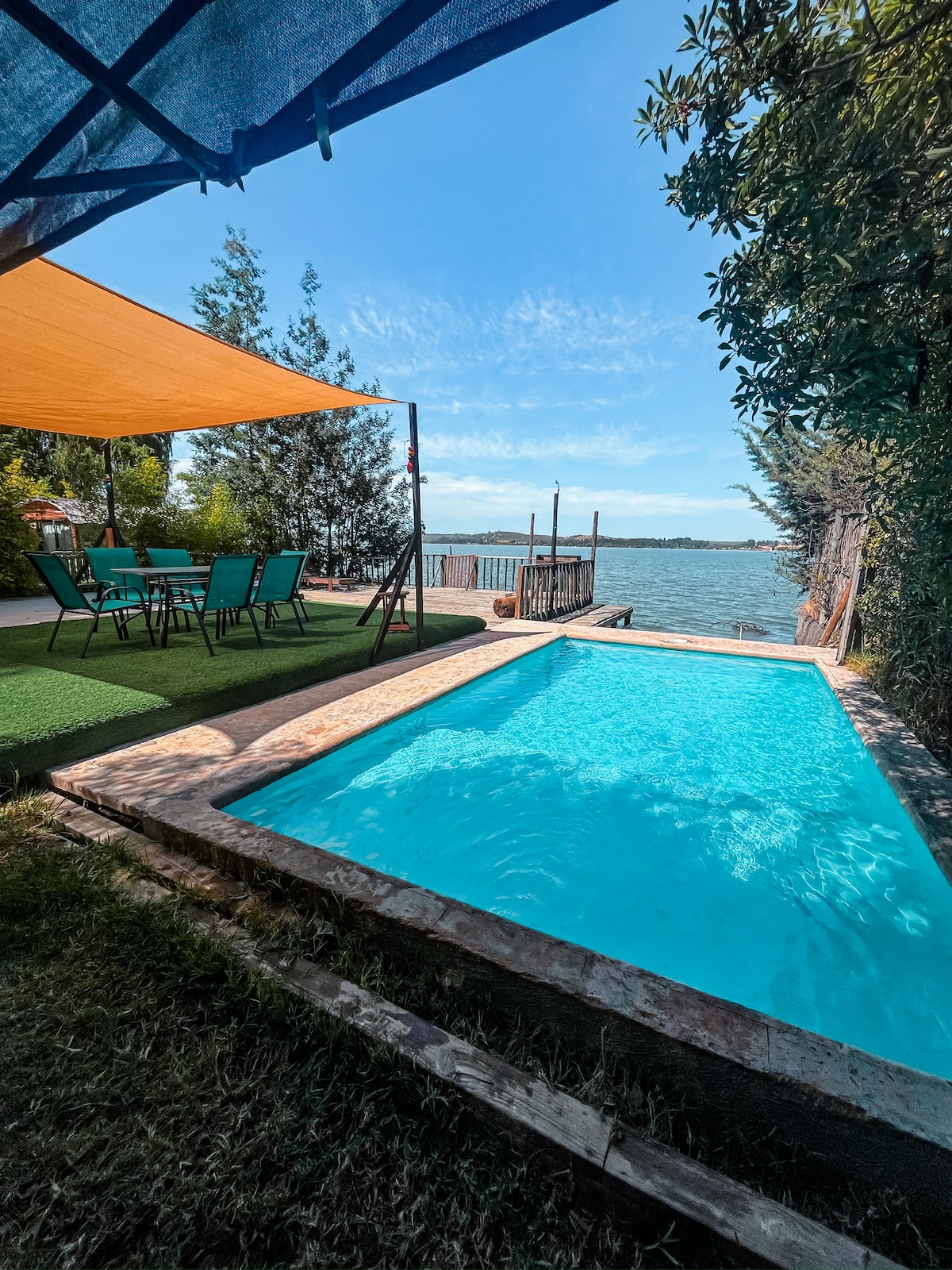 Barbecue sa tabi ng lawa na may Glamping tent May tent na may double bed sa tuluyan Kusina na kumpleto ang kagamitan Cooler Microwave Kettle Loza Mga Salamin Mga kaldero Lahat ng kailangan mo para sa komportableng pamamalagi Pribadong paliguan na may mainit na tubig Pribadong pool Baybayin ng lawa Tungkol sa dalawang kasama na dapat magdala ng mga tent Sapat ang laki ng quincho para sa 3 pang tent