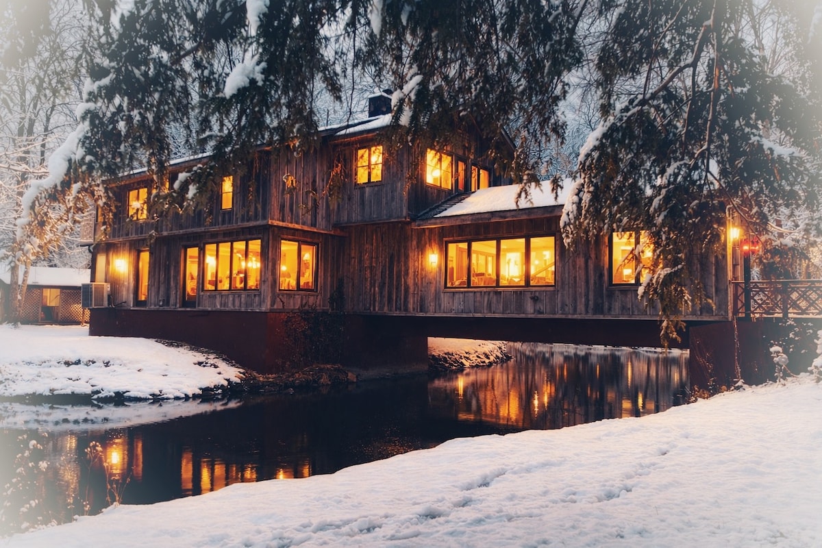 Maligayang pagdating sa isang talagang natatangi at kaakit - akit na bakasyunan - ang Bridge House sa New Albany. Ito ay hindi lamang isang bahay; ito ay isang destinasyon, isang malawak na retreat kung saan ang pagkamausisa ng arkitektura ay nakakatugon sa likas na kagandahan. Matatagpuan sa limang pribadong ektarya, ang natatanging property na ito ay isang tulay, na nag - aalok ng isang kaakit - akit na karanasan habang ito ay direktang nakasalalay sa ibabaw ng tubig.
