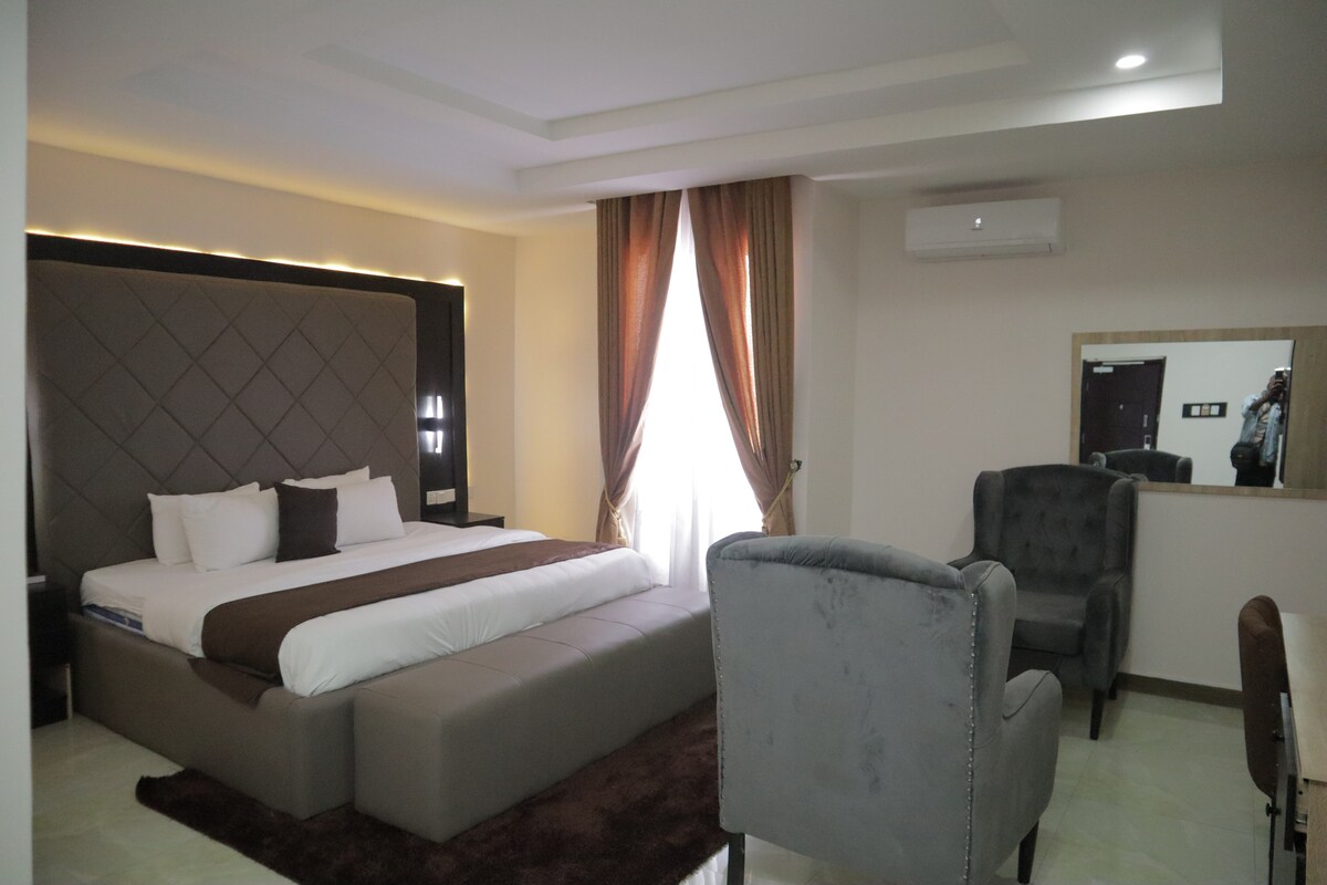 Step into our welcoming 3-bedroom duplex. Enjoy a stylish and thoughtfully designed space, with jacuzzi and well equipped kitchen. Experience the joy of seamless connectivity with fast WiFi, ensuring you stay connected effortlessly. Unwind the day with your favorite shows on Netflix, your stay here promises not just comfort but a seamless blend of modern amenities, making it a perfect home base for your Enugu visit. 30 secs drive from DSS office, 2 mins drive from SARS office and shop rite mall