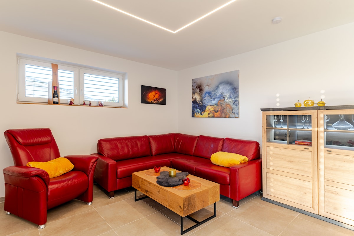 Magbakasyon nang magkasama sa Trausdorfberg na parang oasis na maganda ang dating: komportableng apartment na malapit sa kalikasan na may malaking salaming harapan at French balcony na may tanawin ng kanayunan. Mag‑relaks sa aming farm na may mga manok at tupa at magiliw na kapaligiran. Puwedeng eksklusibong gamitin ang sauna at jacuzzi dahil sa sistema ng pagpapareserba. Itinayo gamit ang mga natural na materyales, oasis ng kasiyahan na may mga produktong panrehiyon sa bukirin. Sa pagitan ng Graz at ng spa at rehiyon ng Südoststeiermark—perpekto para sa katahimikan at kasiyahan.