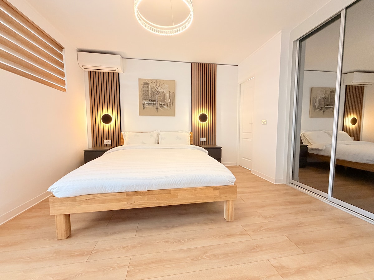 Relaxează-te în acest apartament modern, elegant și spațios. Apartamentul oferă loc de dormit pentru 6 persoane, având 2 dormitoare și o canapea extensibilă în living. Fie pentru business, relaxare sau petrecere, are toate dotările de care ai nevoie pentru o ședere cu succes. Relaxează-te în cadă sau în fața șemineului, uitându-te pe Netflix. Gătește în bucătăria dotată complet și servește mâncarea pe insula din bucătărie. Pregatește-te pentru petrecerea la care mergi în cele 2 băi luminoase