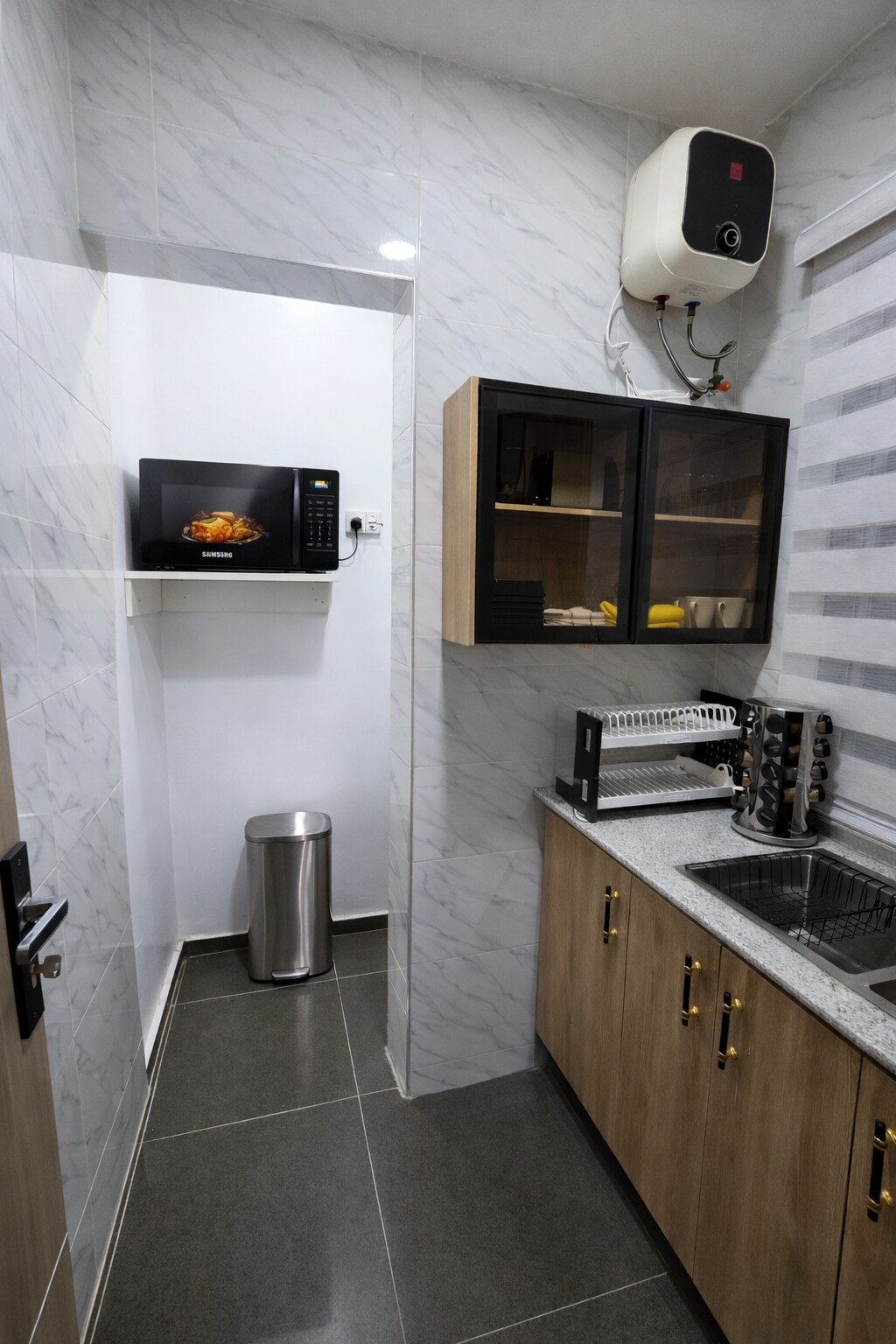 Welcome sa Scandinavian Wabi‑Sabi na isang kuwartong tuluyan namin sa Opebi, Ikeja. Pinagsasama‑sama ng tahimik na bakasyunan na ito ang minimal na disenyo, likas na tekstura, luntiang halaman, at kaakit‑akit na lugar na pwedeng upuan sa labas. Mag‑enjoy sa tahimik na mini‑golf area, sariwang hangin, at kalikasan sa paligid. Nagtatampok ang en-suite na kuwarto ng king-size na higaan, mainit na earthy tones, komportableng living area na may Netflix, libreng WiFi, at kumpletong kusina—lahat sa isang gated na komunidad na ilang minuto mula sa airport at malapit sa mga bangko, restawran at tindahan ng grocery.