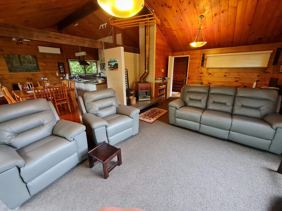 Mainam ang maaraw na bach na ito sa tabi ng lawa para sa pagrerelaks at pagpapahinga. Mag-enjoy sa mga tanawin ng lawa, paliguan sa labas, at pizza oven para sa mga nakakarelaks na gabi. Mag‑active sa pamamagitan ng pagka‑kayak, pagpa‑paddle board, o pagbi‑bike sa Redwoods. Tuklasin ang magiliw na lokal na komunidad at kumain ng mga burger at uminom ng craft beer sa Okere Falls Store. Makakapangisda, makakapag‑water ski, at makakapag‑hot pool sa malapit lang. Paradahan sa tabi ng kalsada; maaaring humiling ng access sa pantalan.