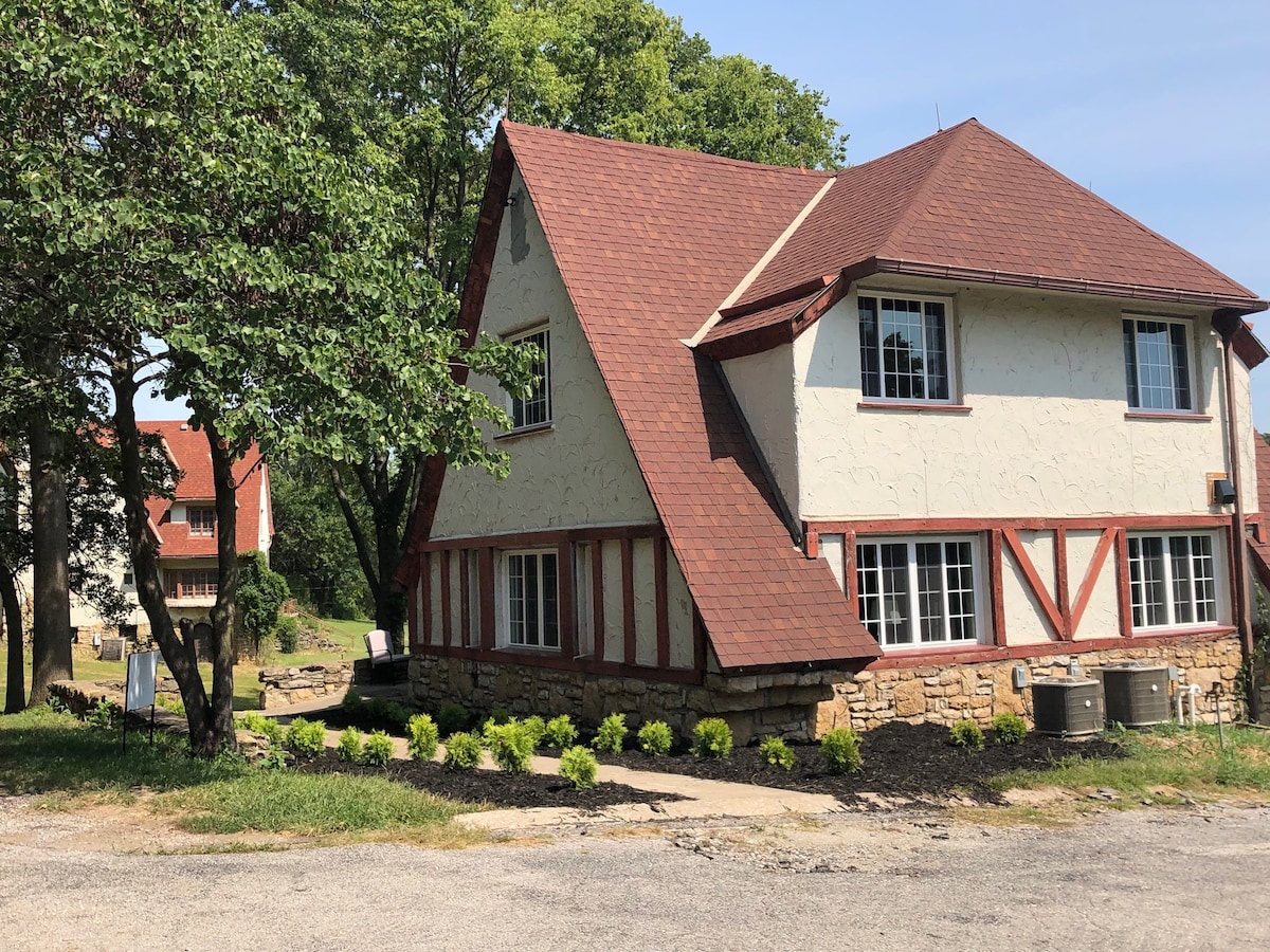 Hummingbird Vista is located in tranquil Unity Village, just minutes from Kansas City and Lee’s Summit (and 20 minutes from the Truman Sports Complex). The 3-story, English Cotswold-style home on the 2nd hole of the Unity Village golf course has 4 bedrooms, 2 baths, and can comfortably sleep 12 people. It features a wet bar and fireplace with remote control. Perfect for large families, reunions, retreats, etc. Includes access to a state-of-the-art fitness center.