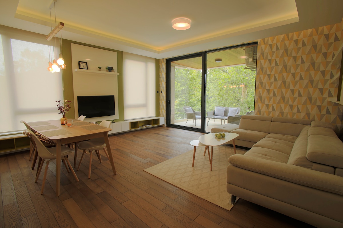 Kamakailang natapos at kaaya - ayang inayos sa tunay na modernong fashion at ipinagmamalaki ang natatanging kagandahan na matatagpuan sa Tivat Center. Malapit ka nang makarating sa lahat ng serbisyong kailangan mo para sa iyong pamamalagi: Ang mga beach, istasyon ng bus, atbp. **MGA ITINATAMPOK NA SPEC.** Bagong Itinayo (2019) Bundok at berdeng tanawin mula sa balkonahe Pribadong paradahan sa garahe 2 minutong lakad papunta sa sentro ng lungsod ng Porto Montenegro at Tivat 2 silid - tulugan at 2 banyo Lux. & kumpletong kagamitan